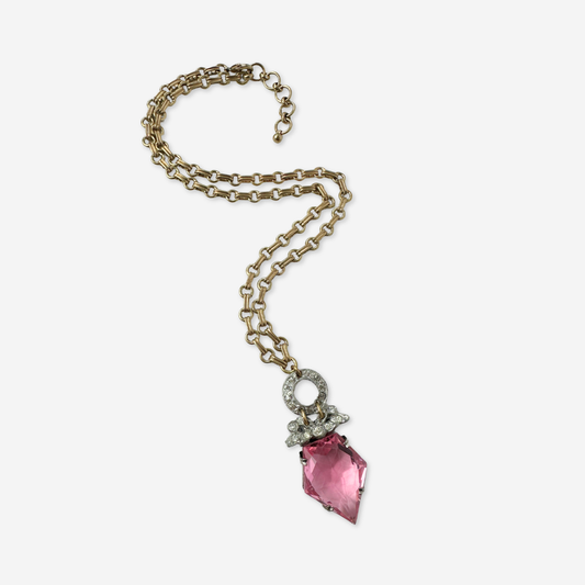 Vintage art deco pink and clear rhinestone assemblage necklace