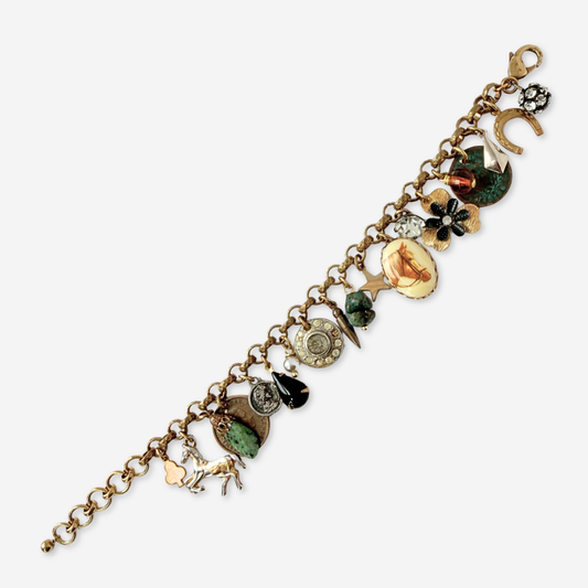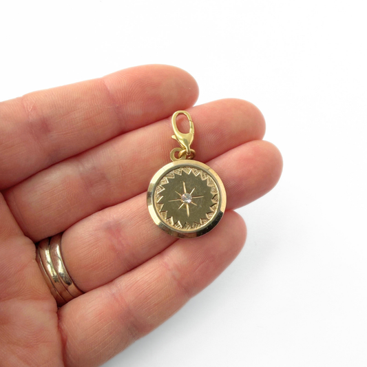 Vintage gold plated circular charm with rhinestone center