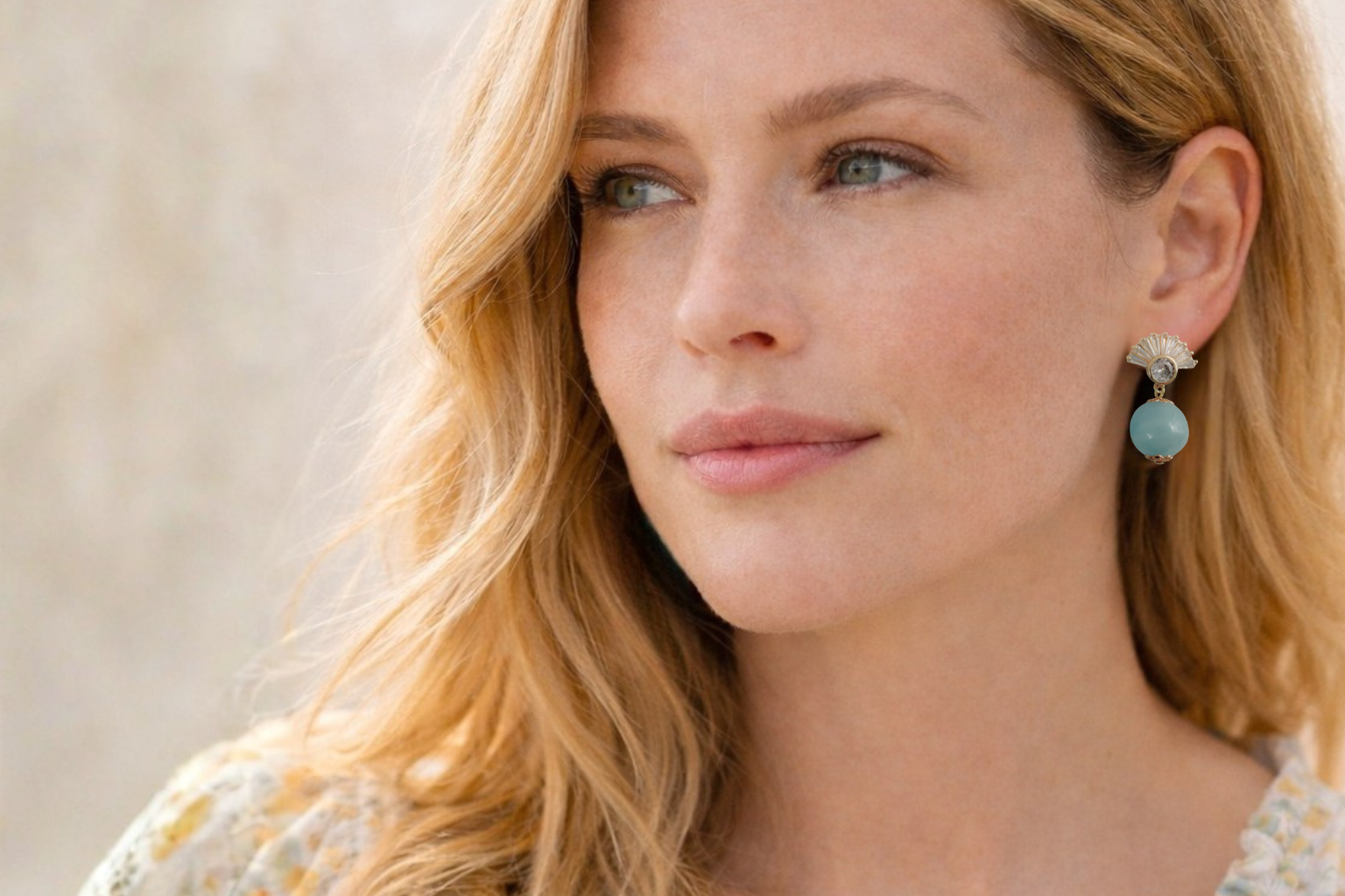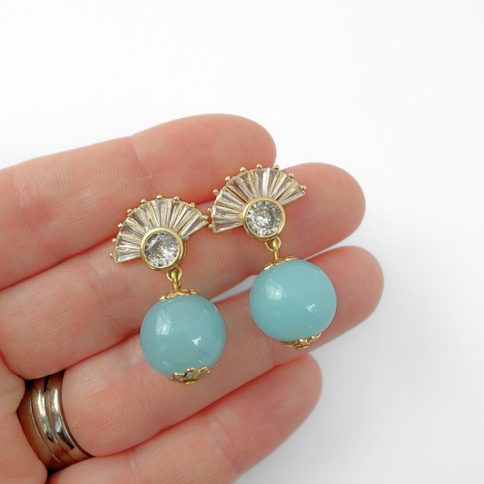 Vintage large sky blue Japanese glass bead earrings with deco fan posts