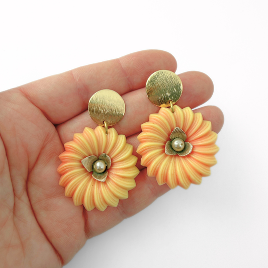 Large midcentury peachy plastic flower earrings