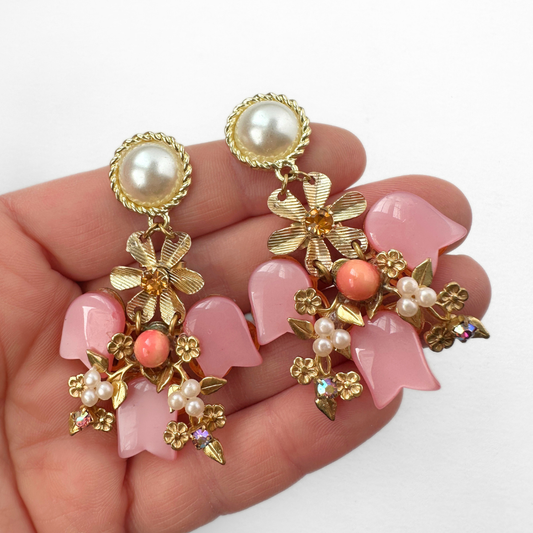 Vintage turquoise, gold, and clear rhinestone flower charm