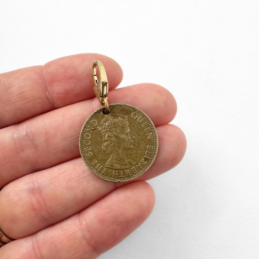 Vintage Jamaican half penny Queen Elizabeth coin charm