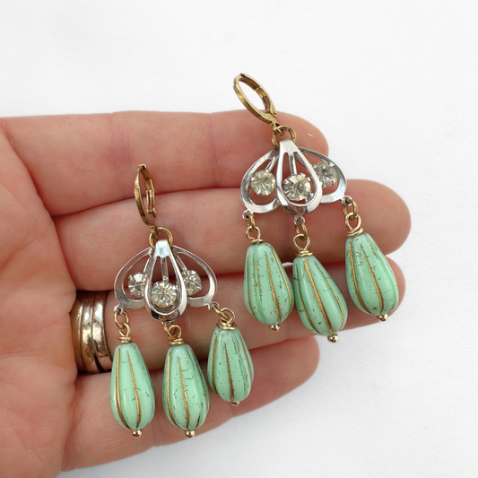 Refashioned vintage clear rhinestone and mint teardrop earrings