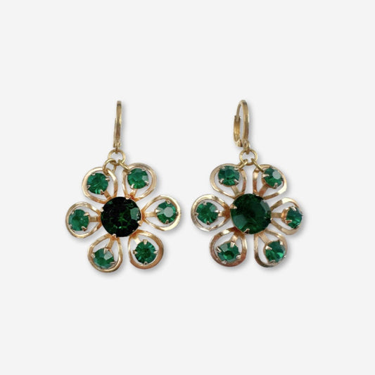 Refashioned vintage clear rhinestone and jade green large circular earrings