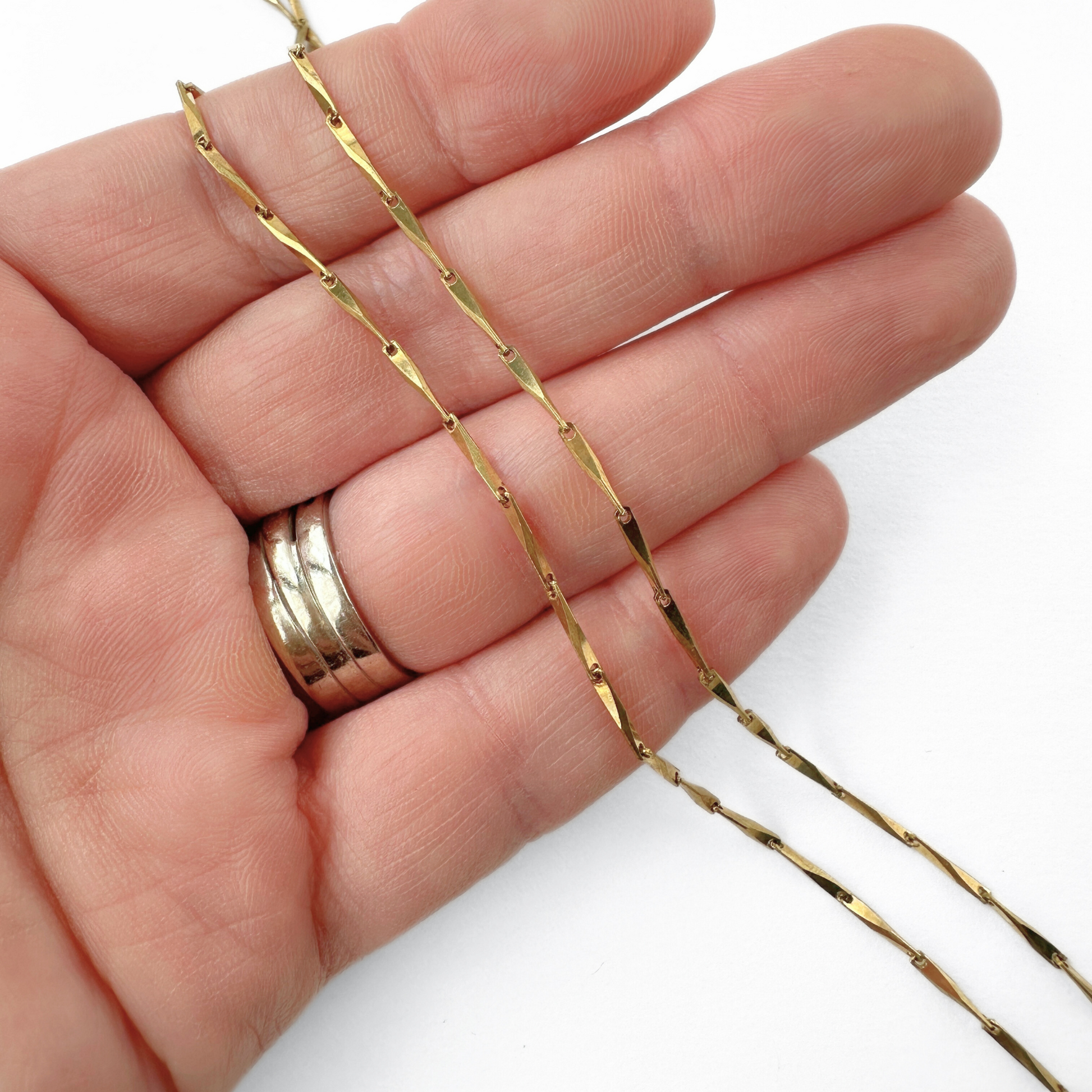 Thin brass beveled bar link blank chain