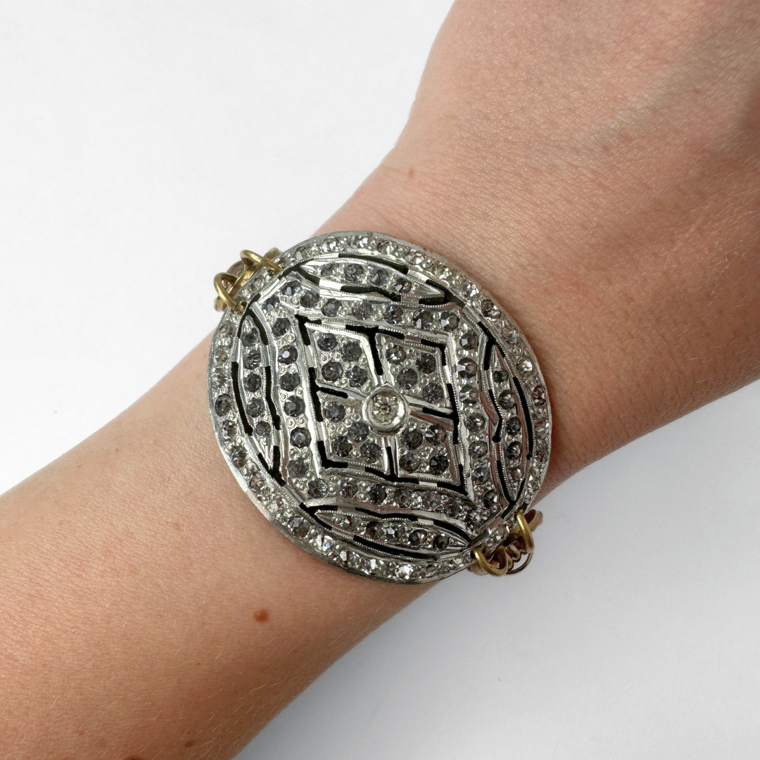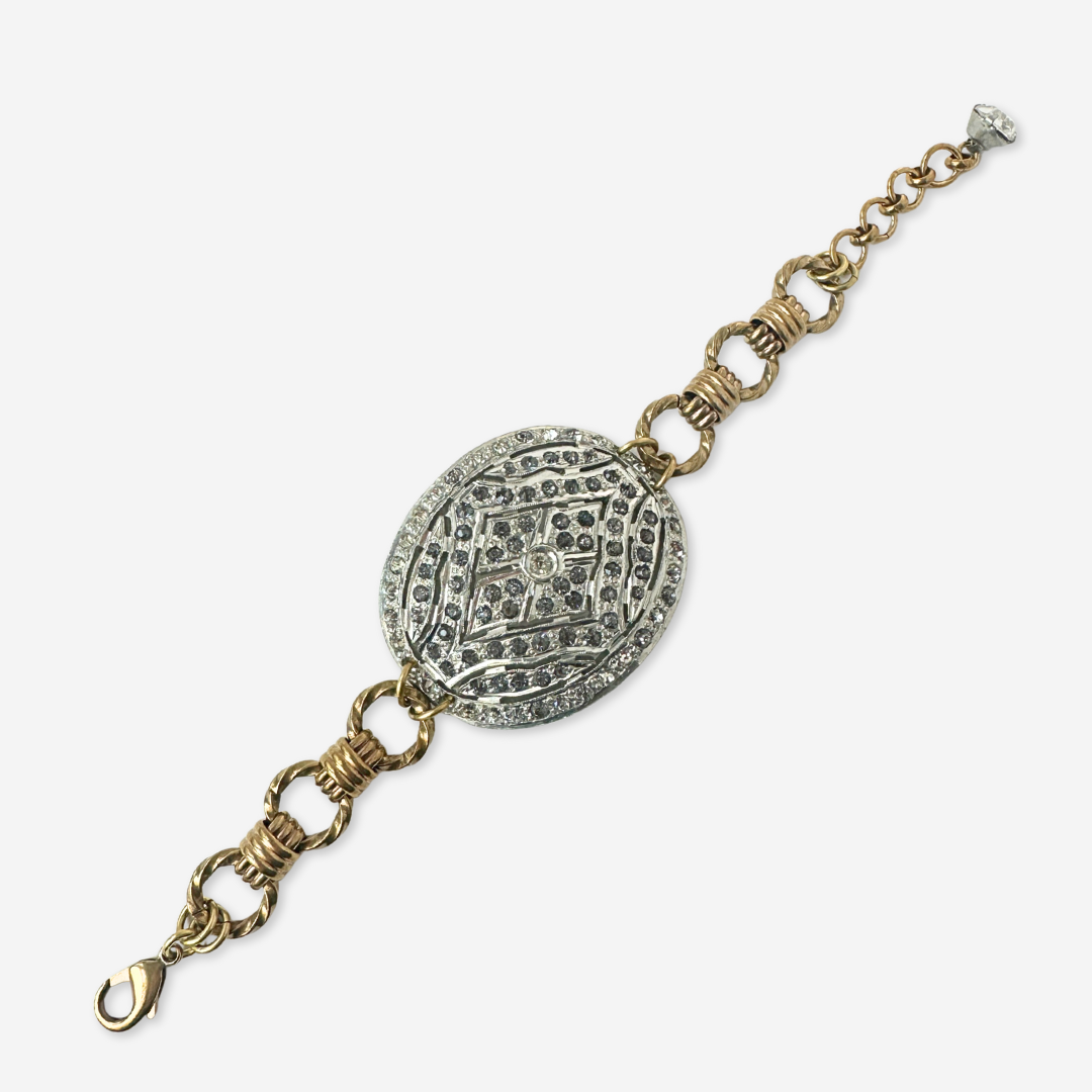 Refashioned Antique Rhinestone oval Shoe Buckle bracelet with brass chain