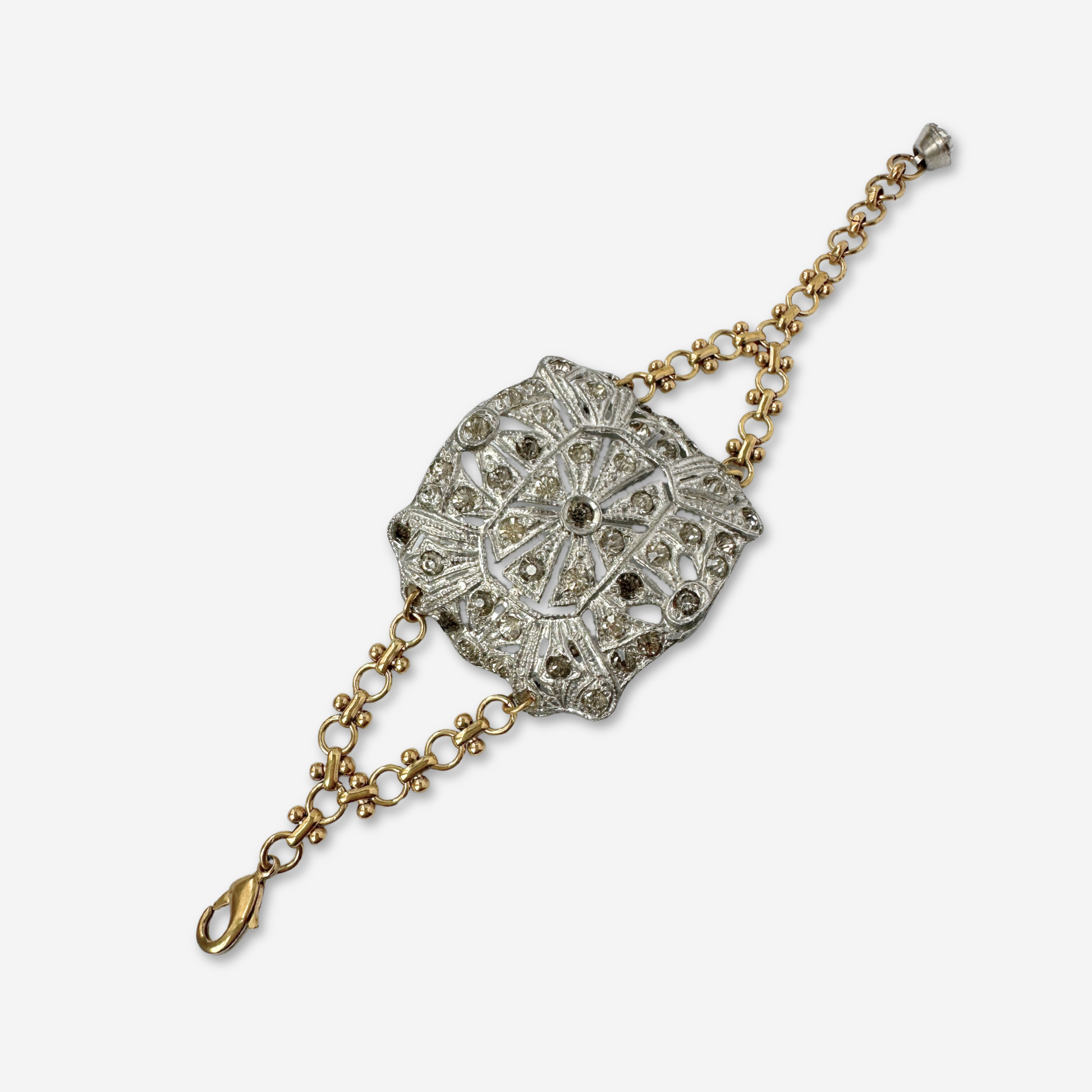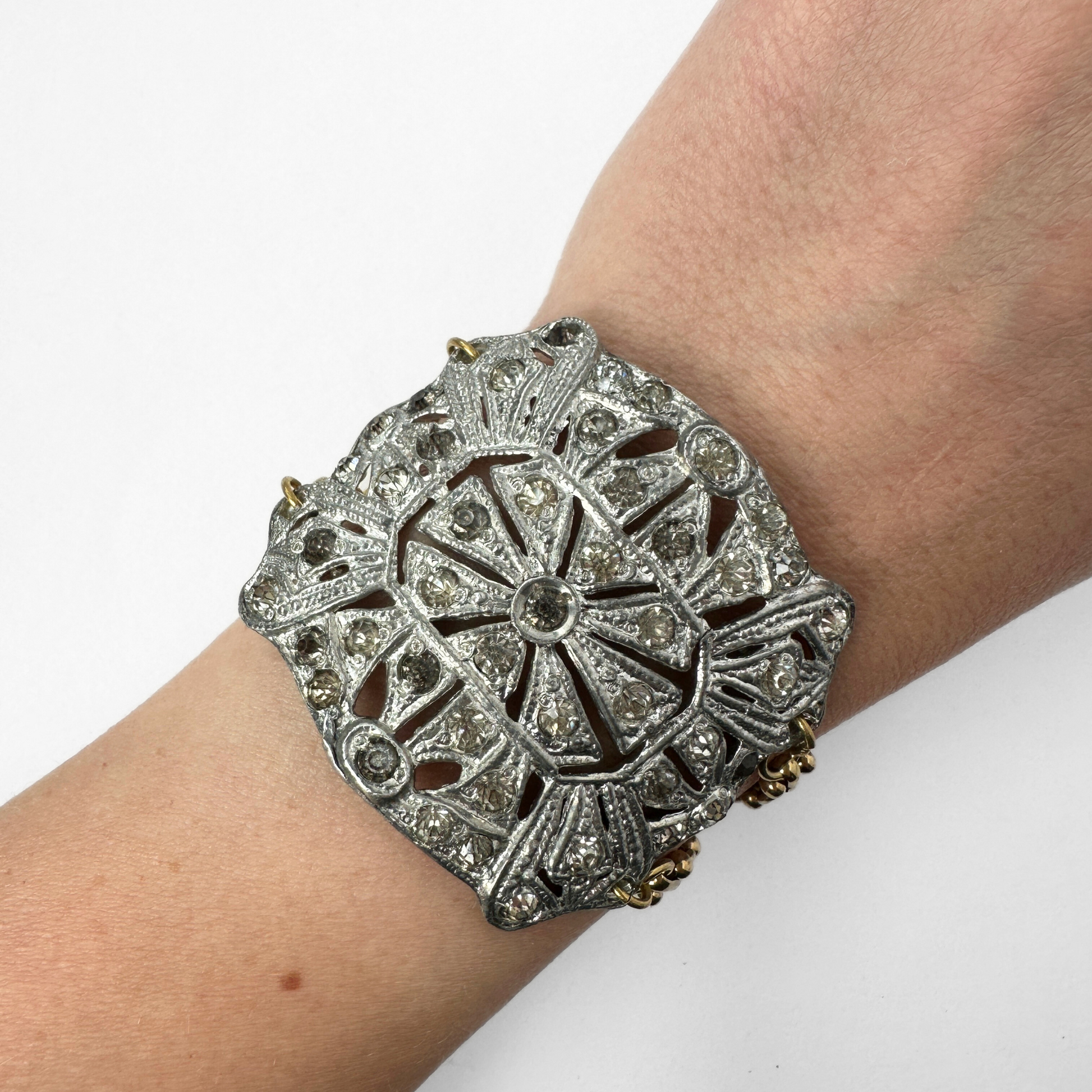 Refashioned Antique Rhinestone shoe Buckle bracelet with brass chain