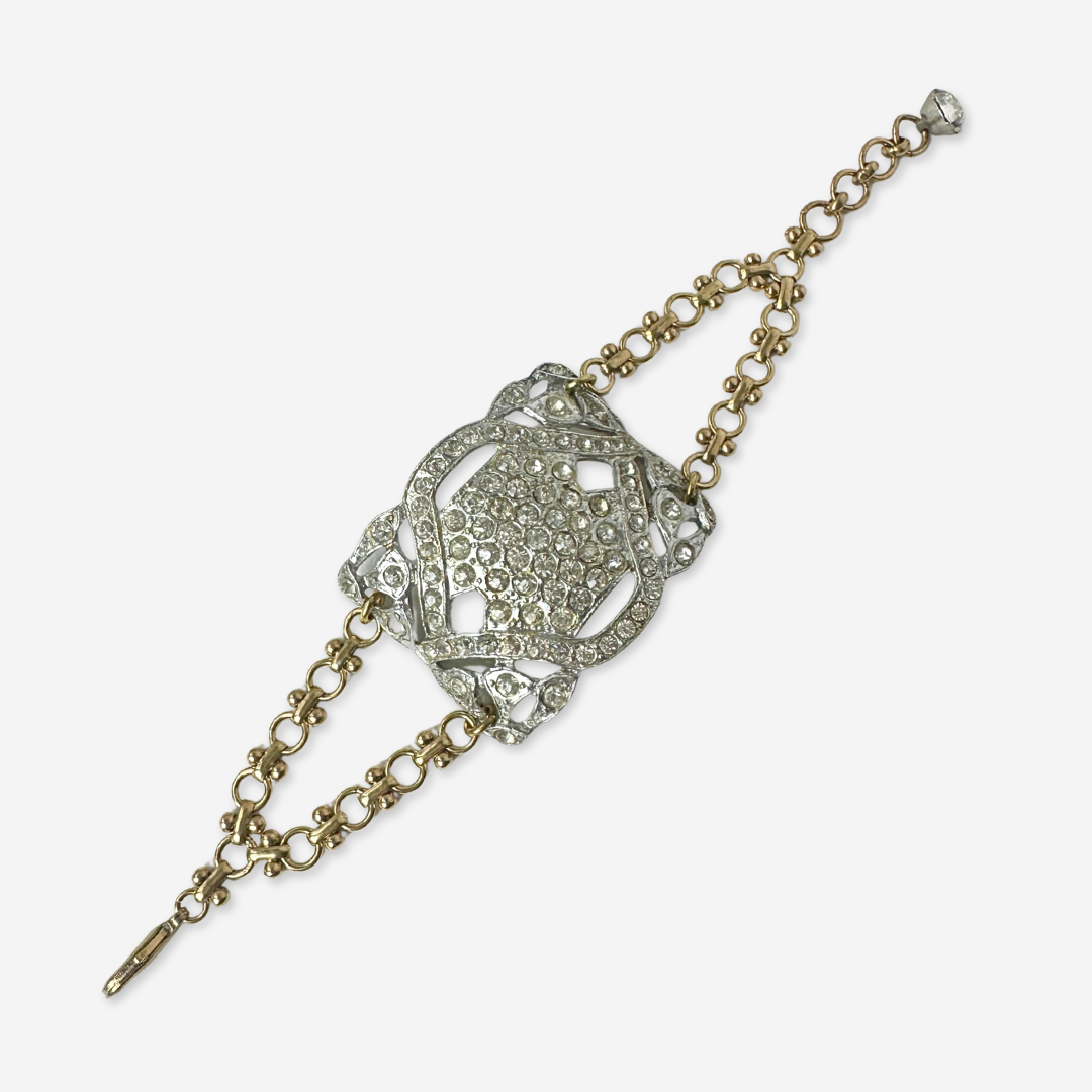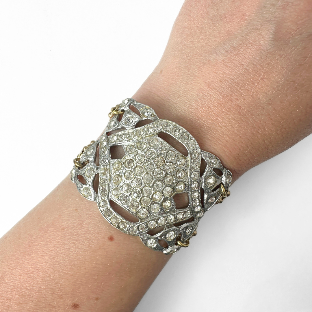 Refashioned Antique Rhinestone Shoe Buckle bracelet with brass chain
