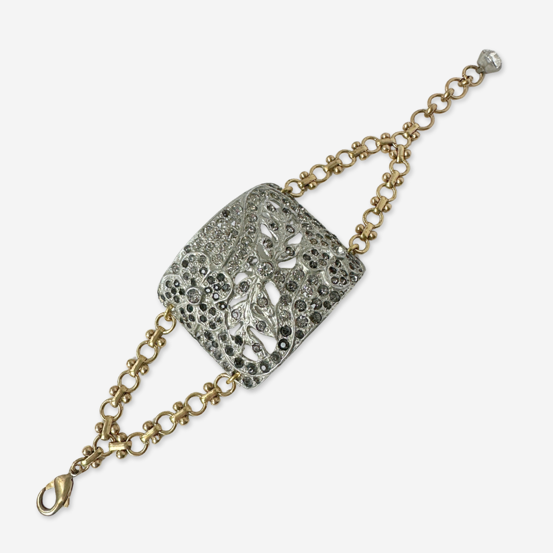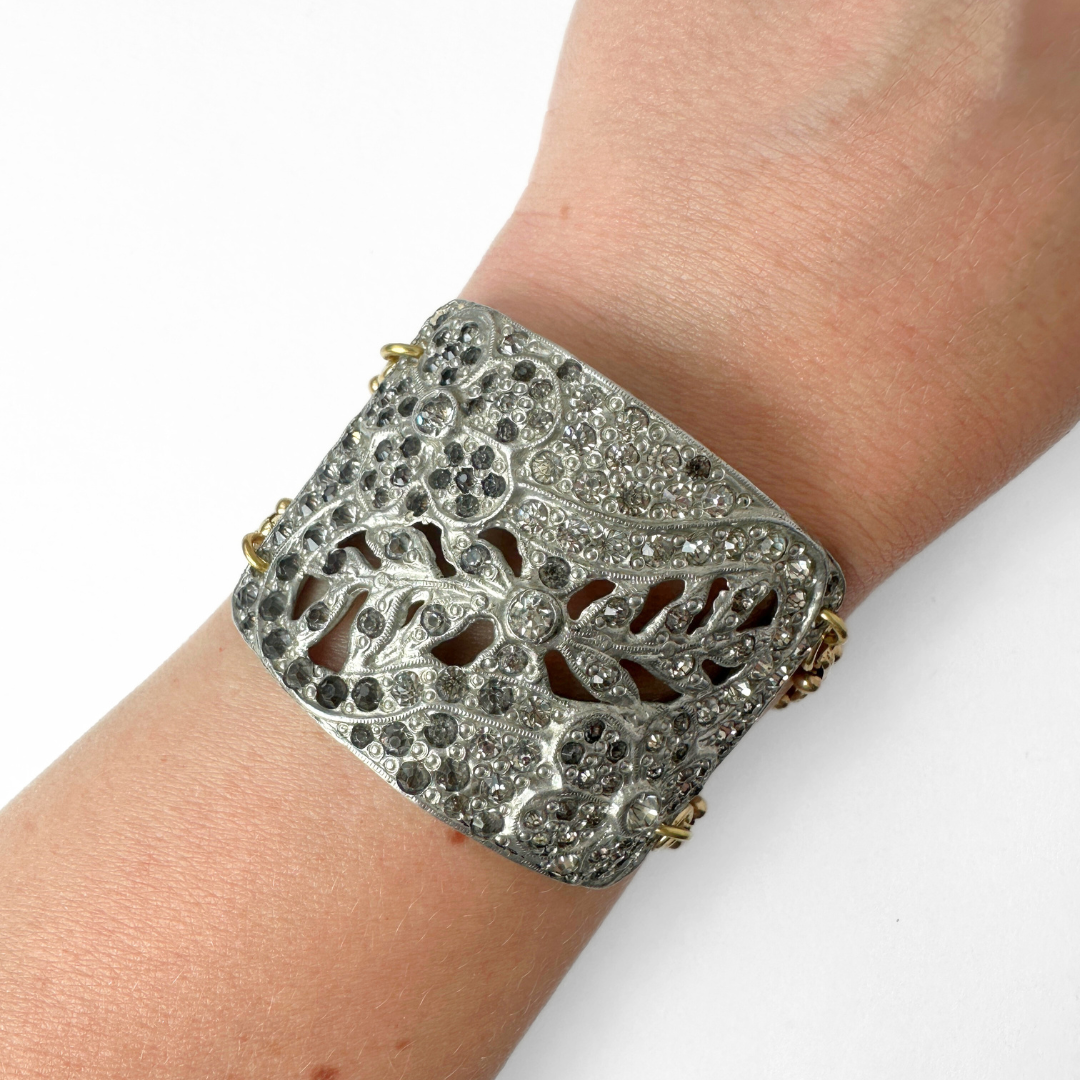 Refashioned Antique Rhinestone Shoe Buckle bracelet with brass chain