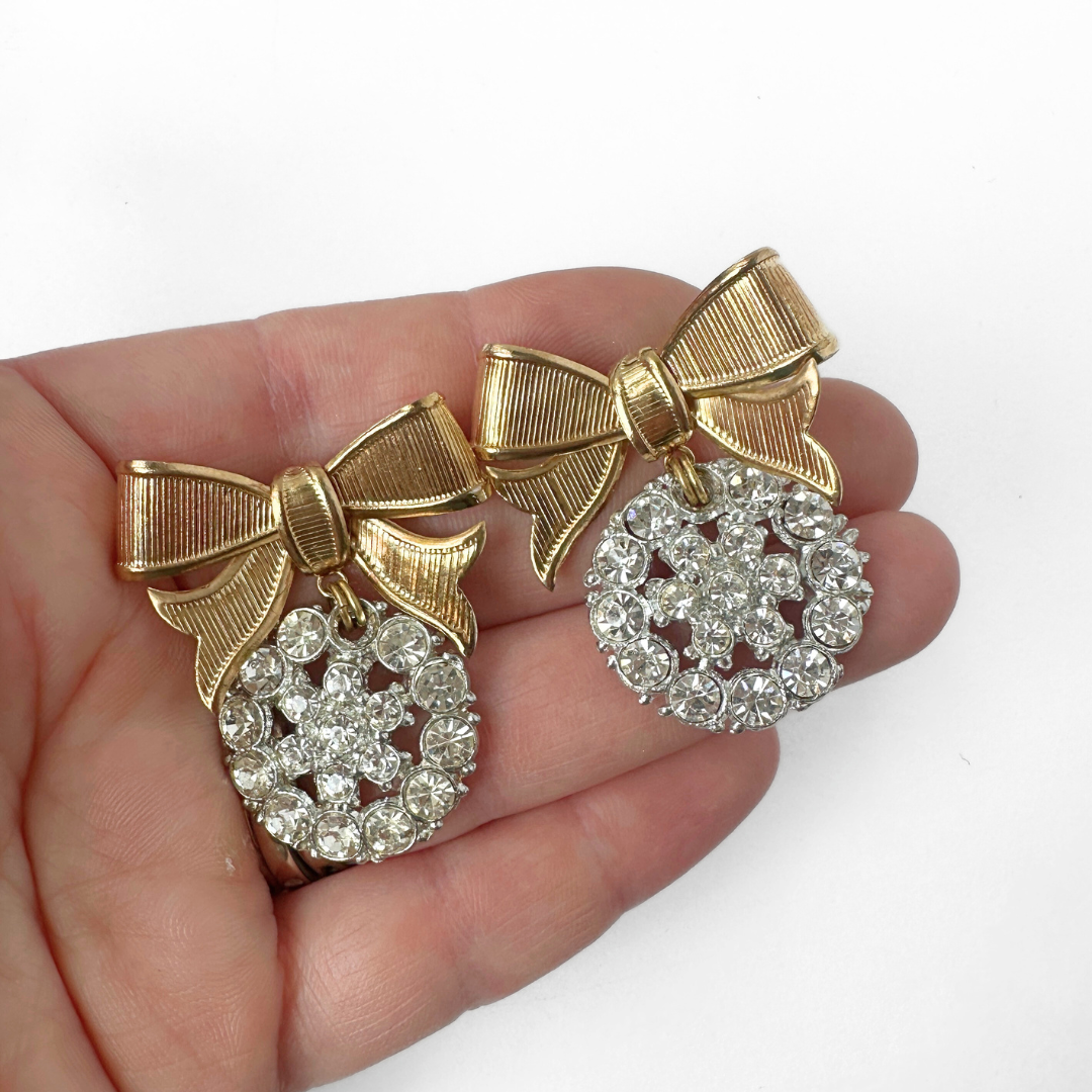 Refashioned vintage clear rhinestone button earrings with gold bow posts