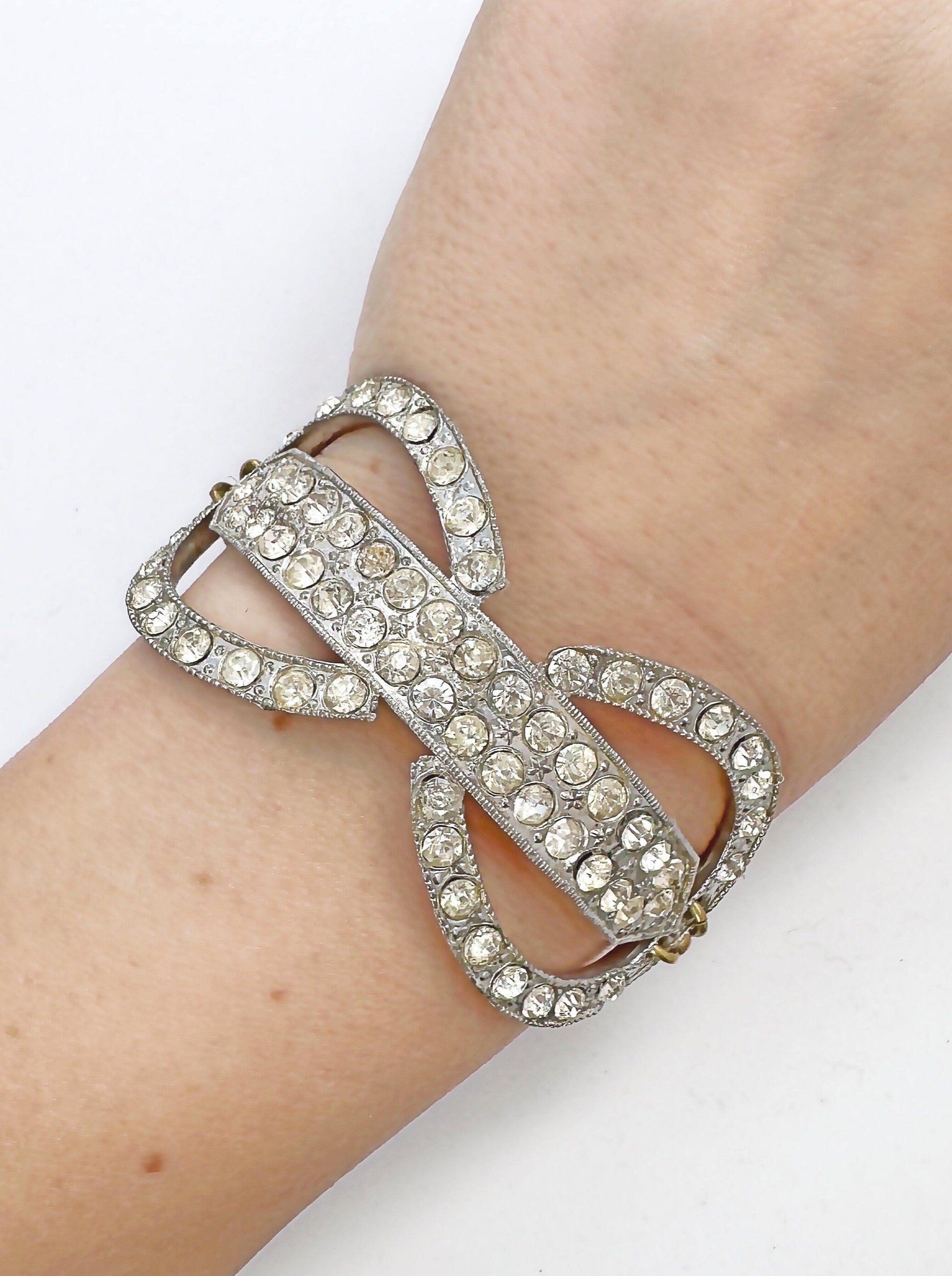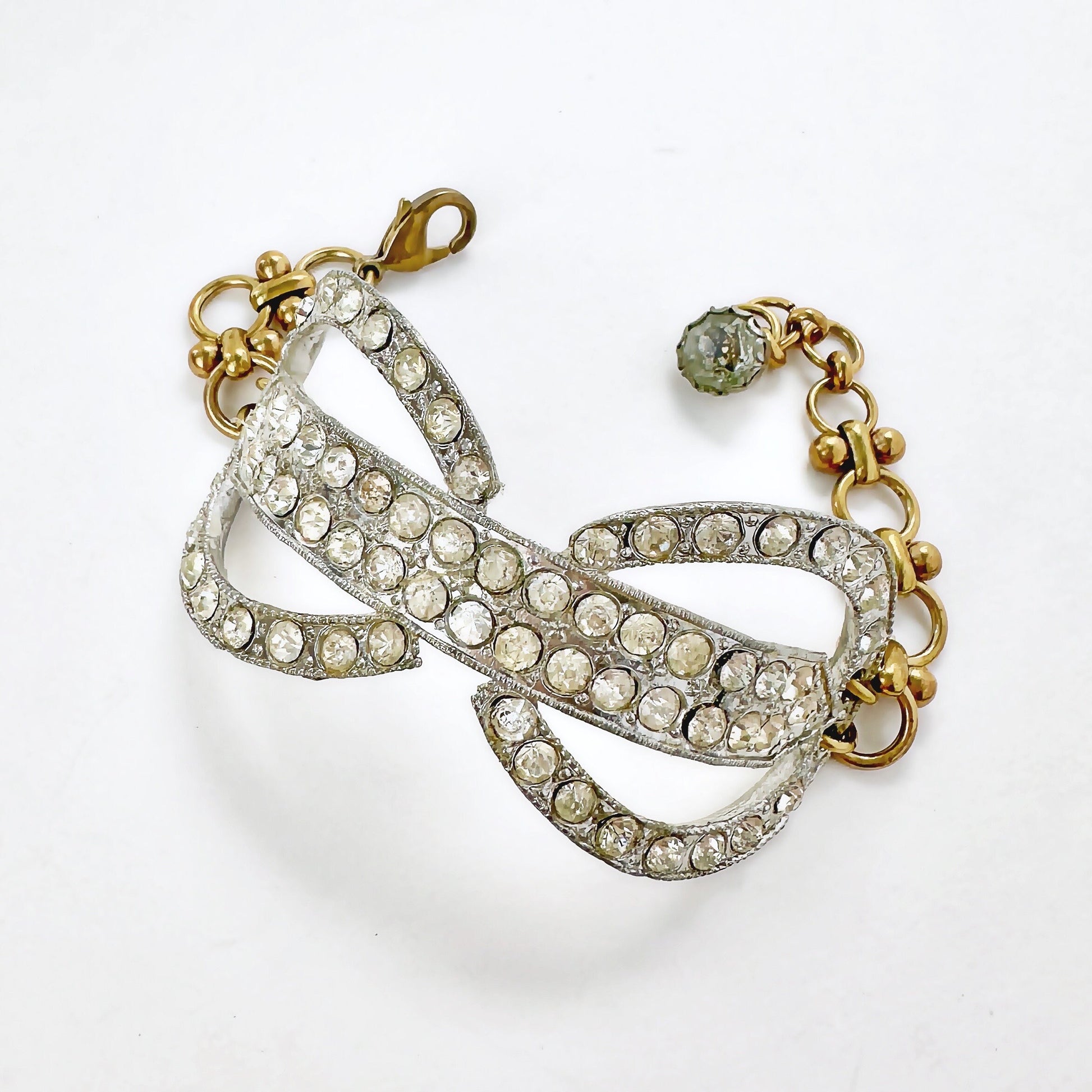 Refashioned vintage clear and rhinestone cuff bracelet with brass chain