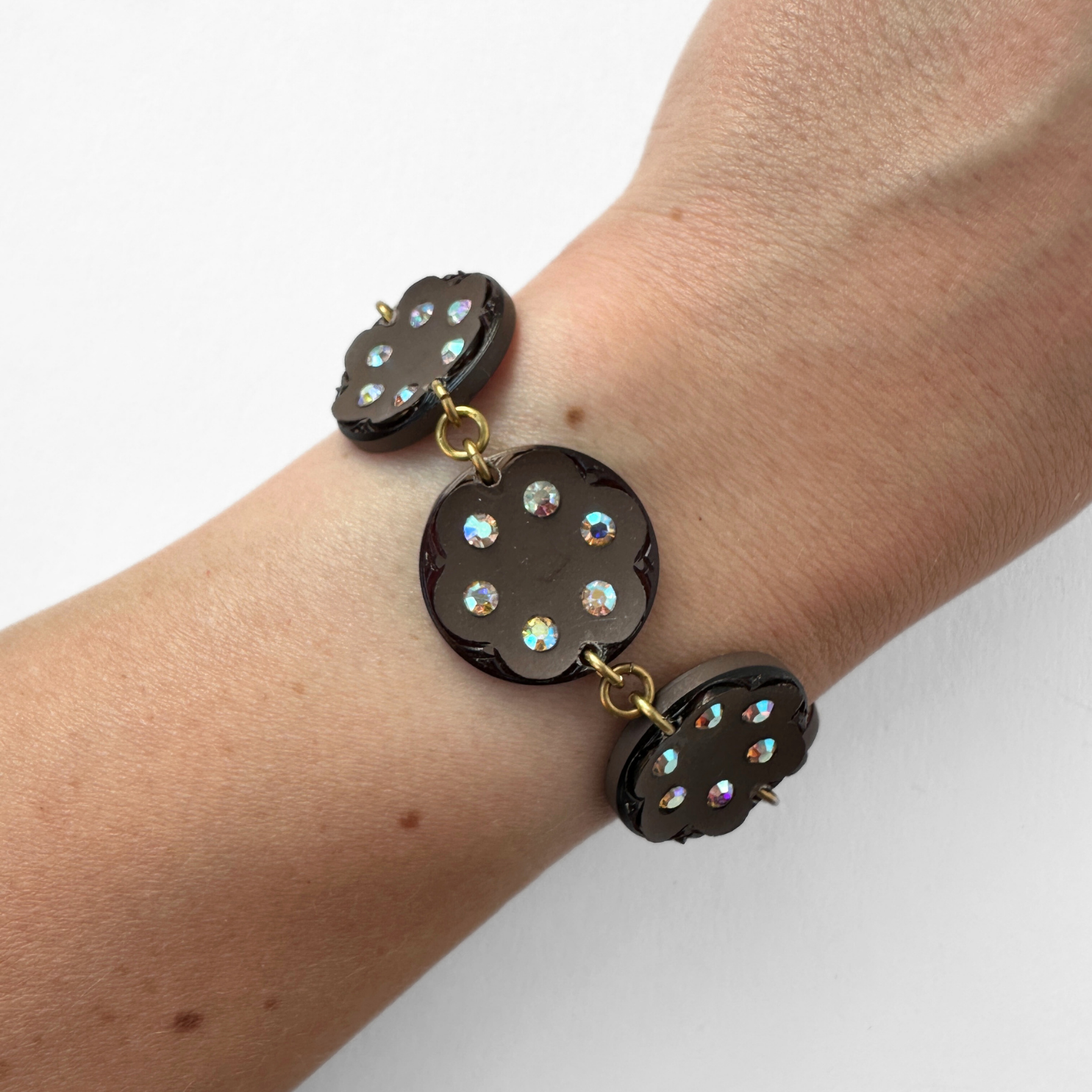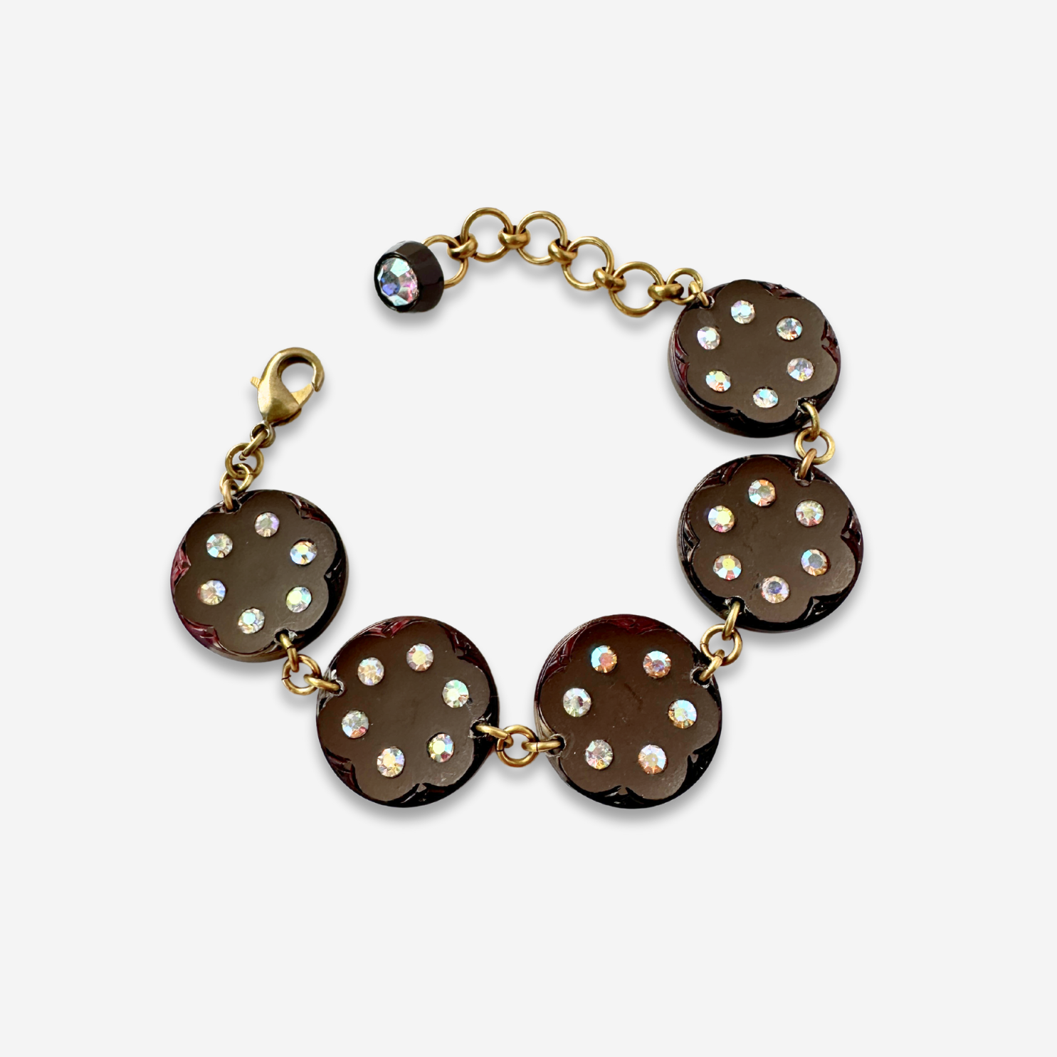 Refashioned Vintage rhinestone brown rhinestone button bracelet