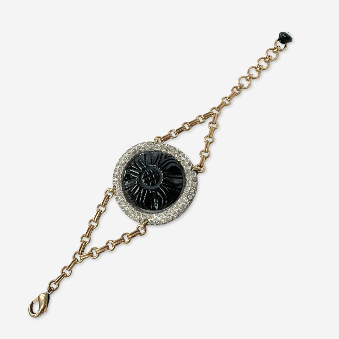 Repurposed vintage black carved bakelite and rhinestone circular bracelet