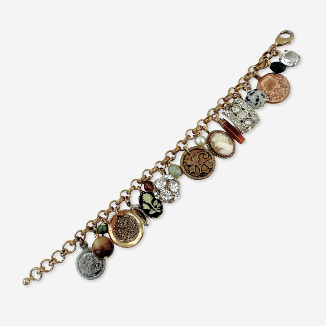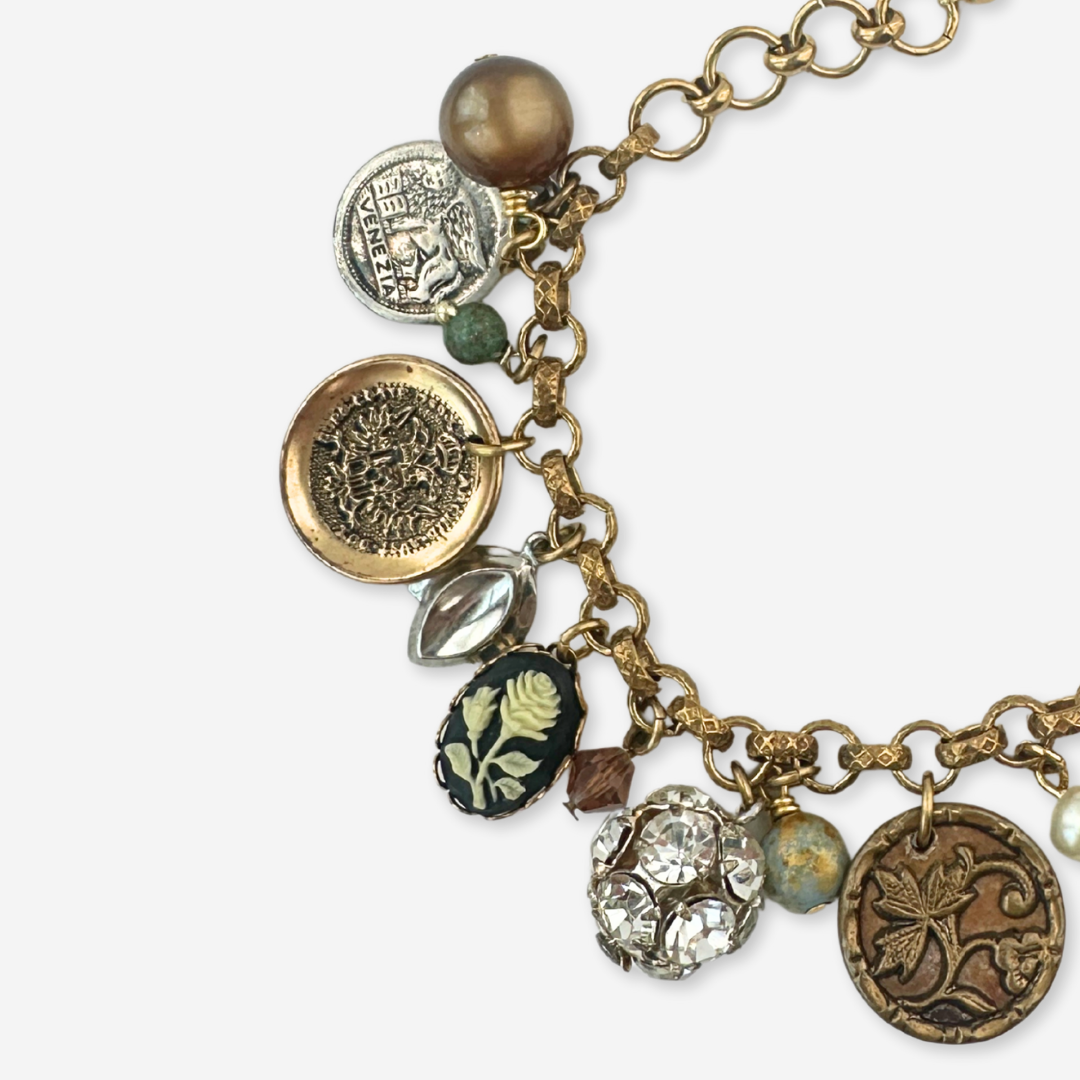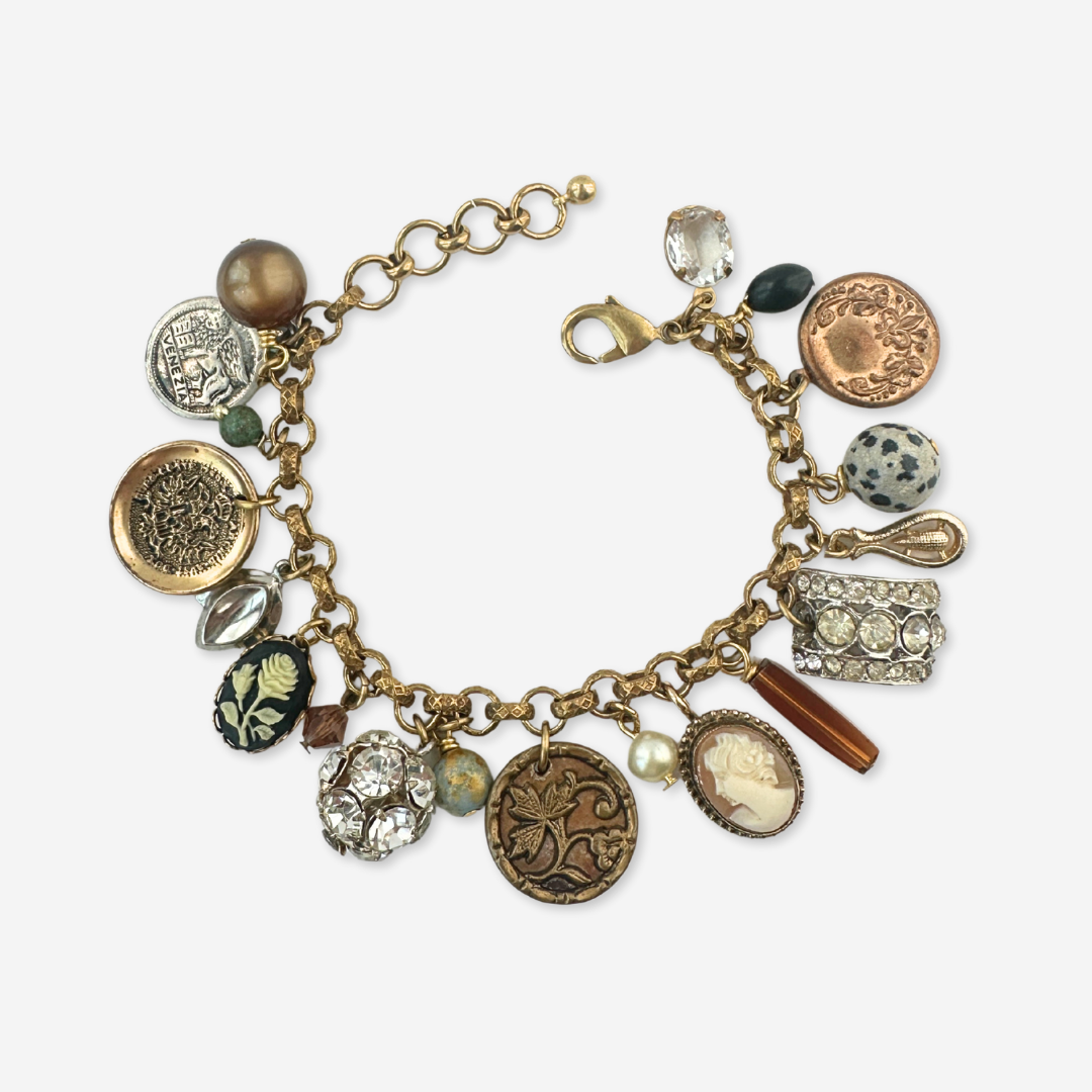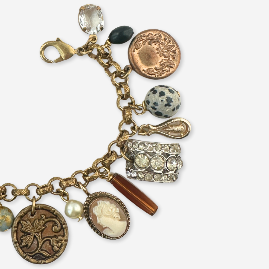 Repurposed vintage loaded mixed charm bracelet