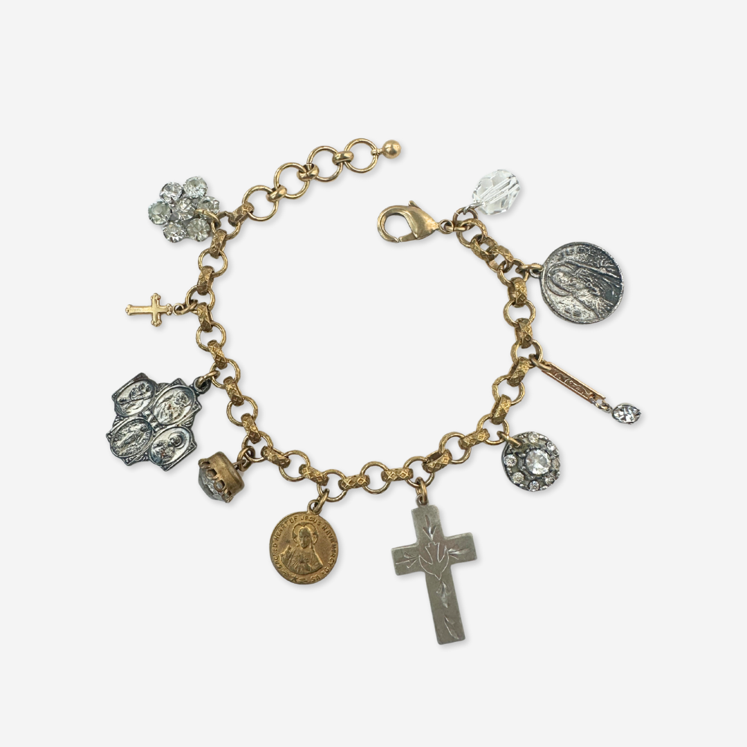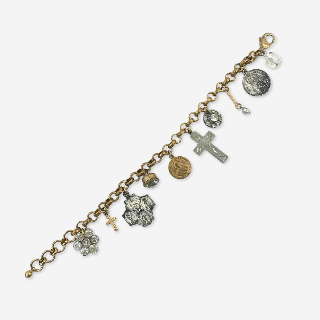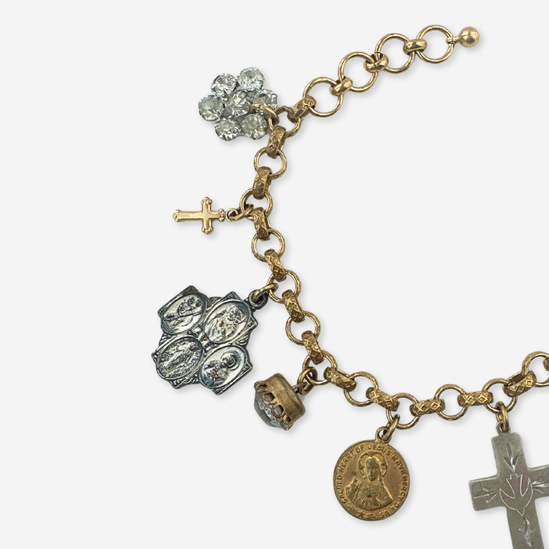 - Created using a combination of both new and repurposed vintage pieces, including buttons, beads, charms, and rhinestones.
