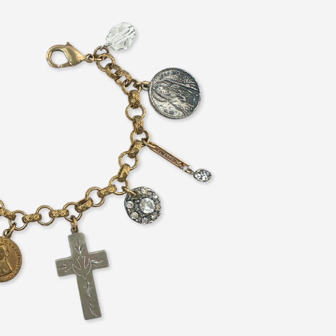 - Religious medals include a 4-way cross, a sacred heart of Jesus, and St. Jude