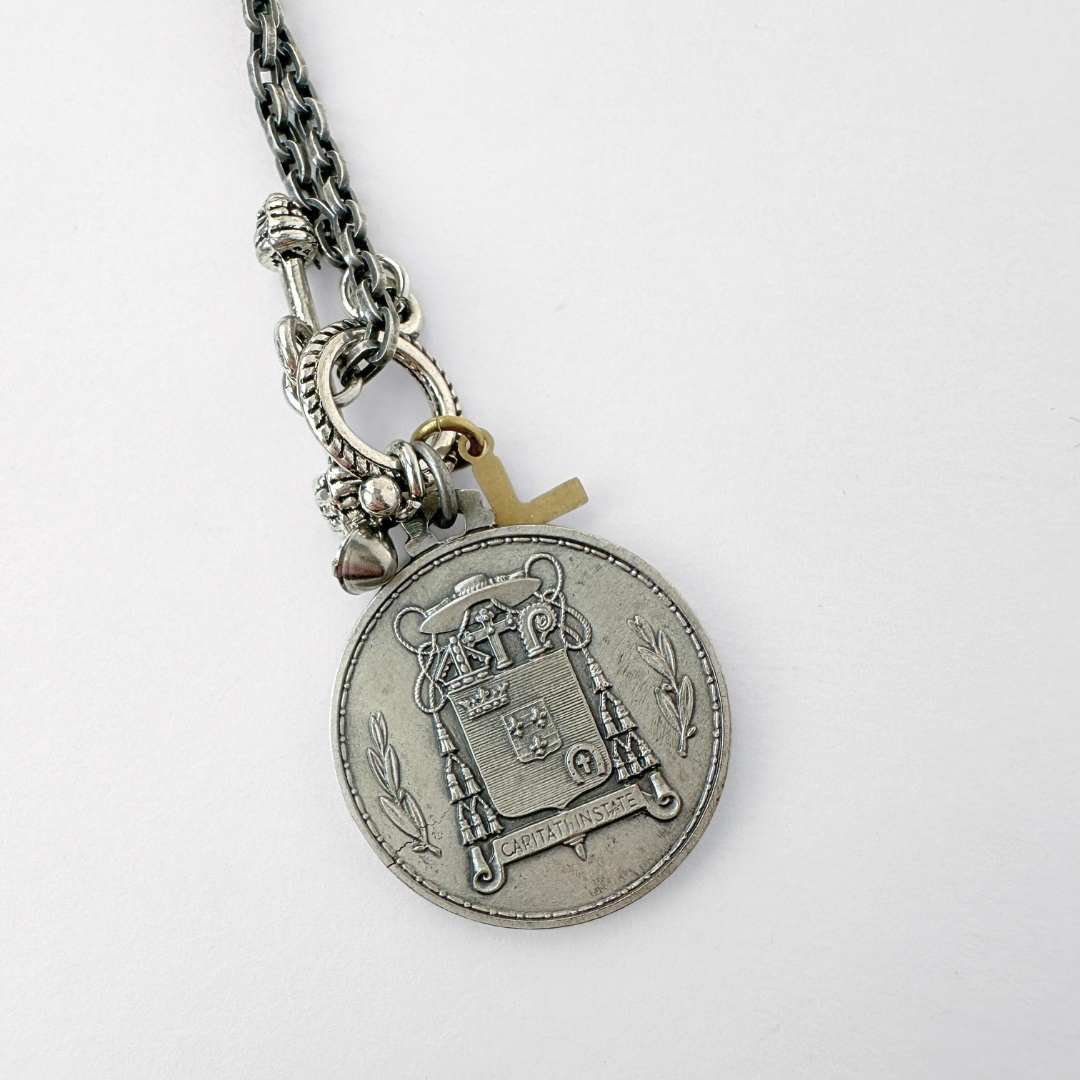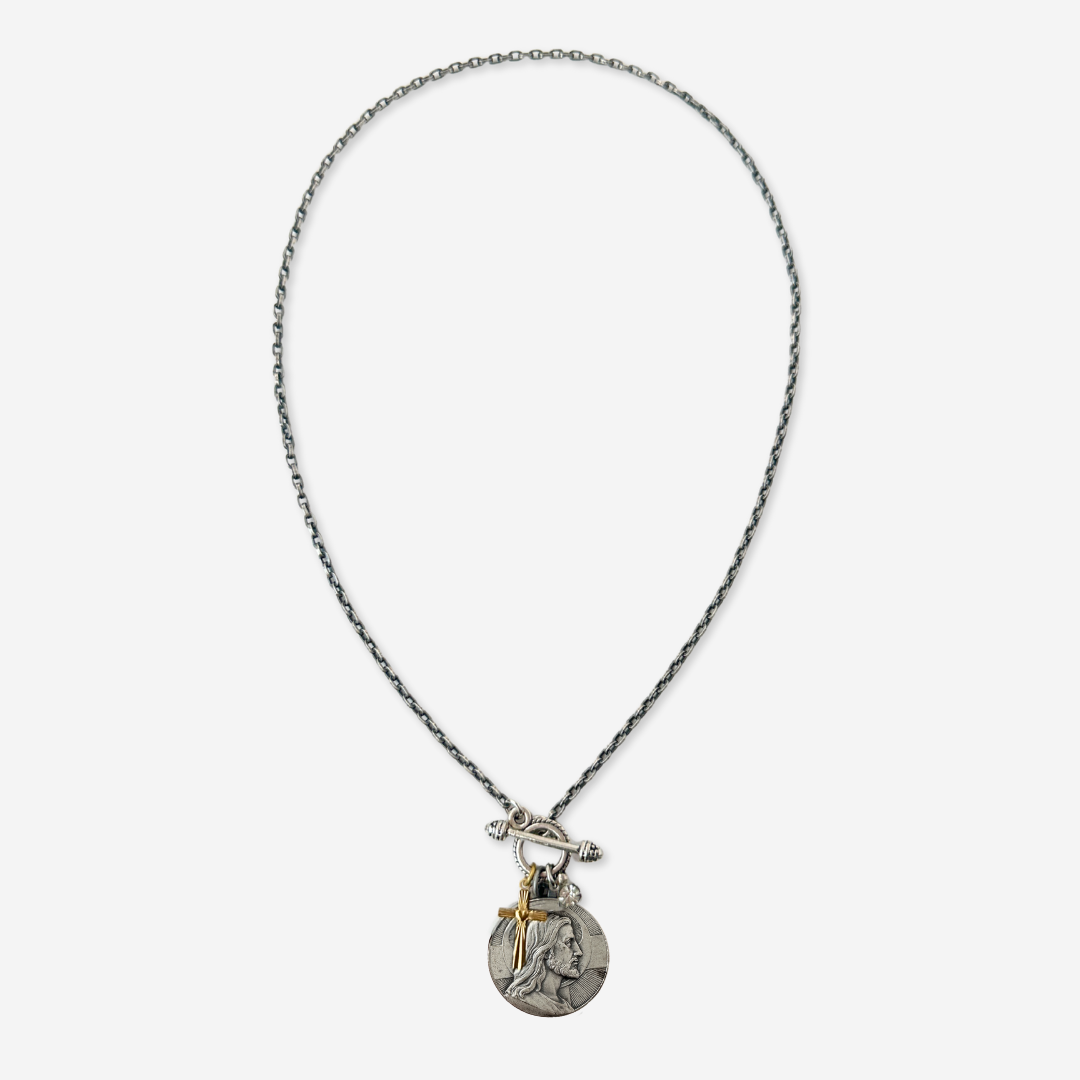 - Vintage matte silver Jesus Christ medal (likely pewter)