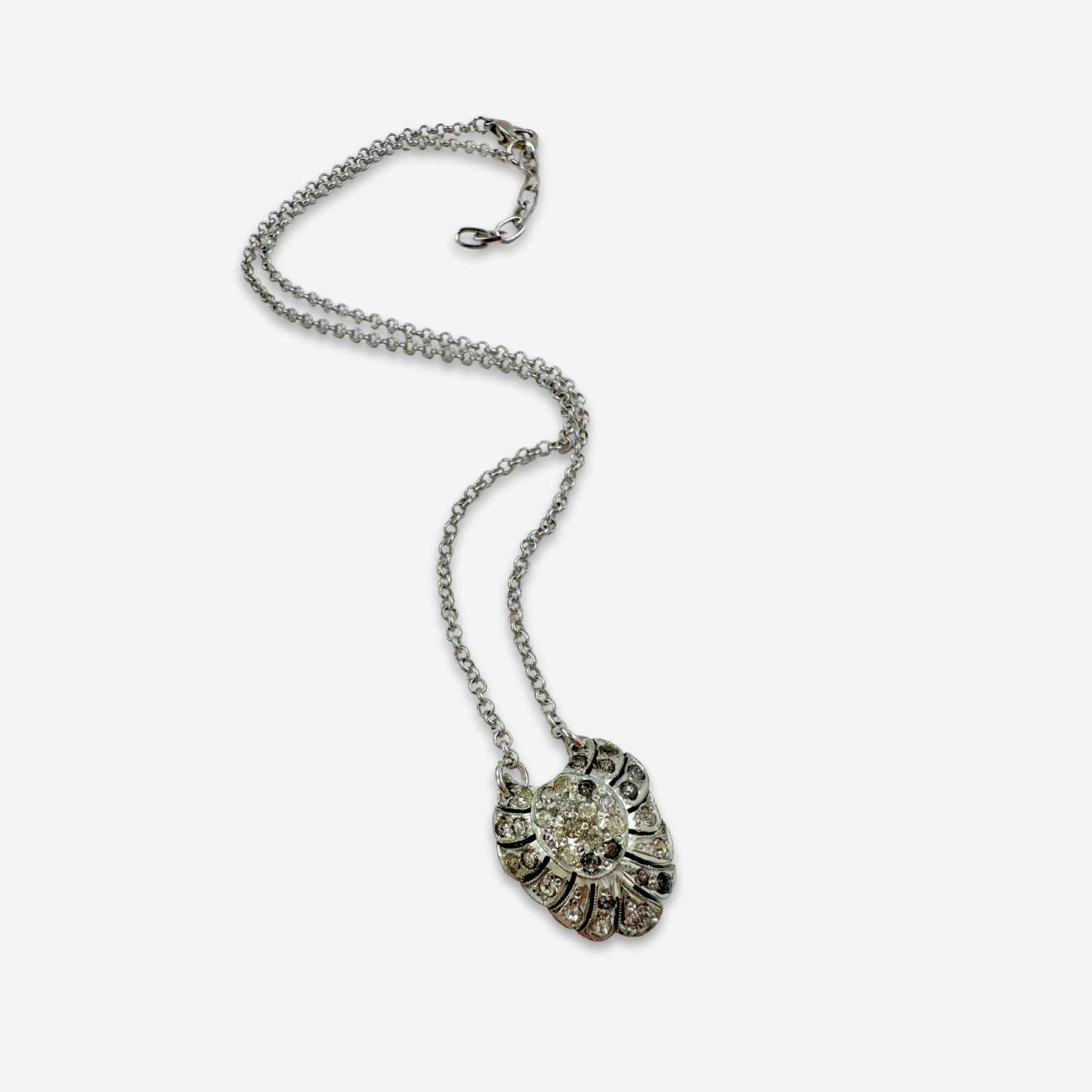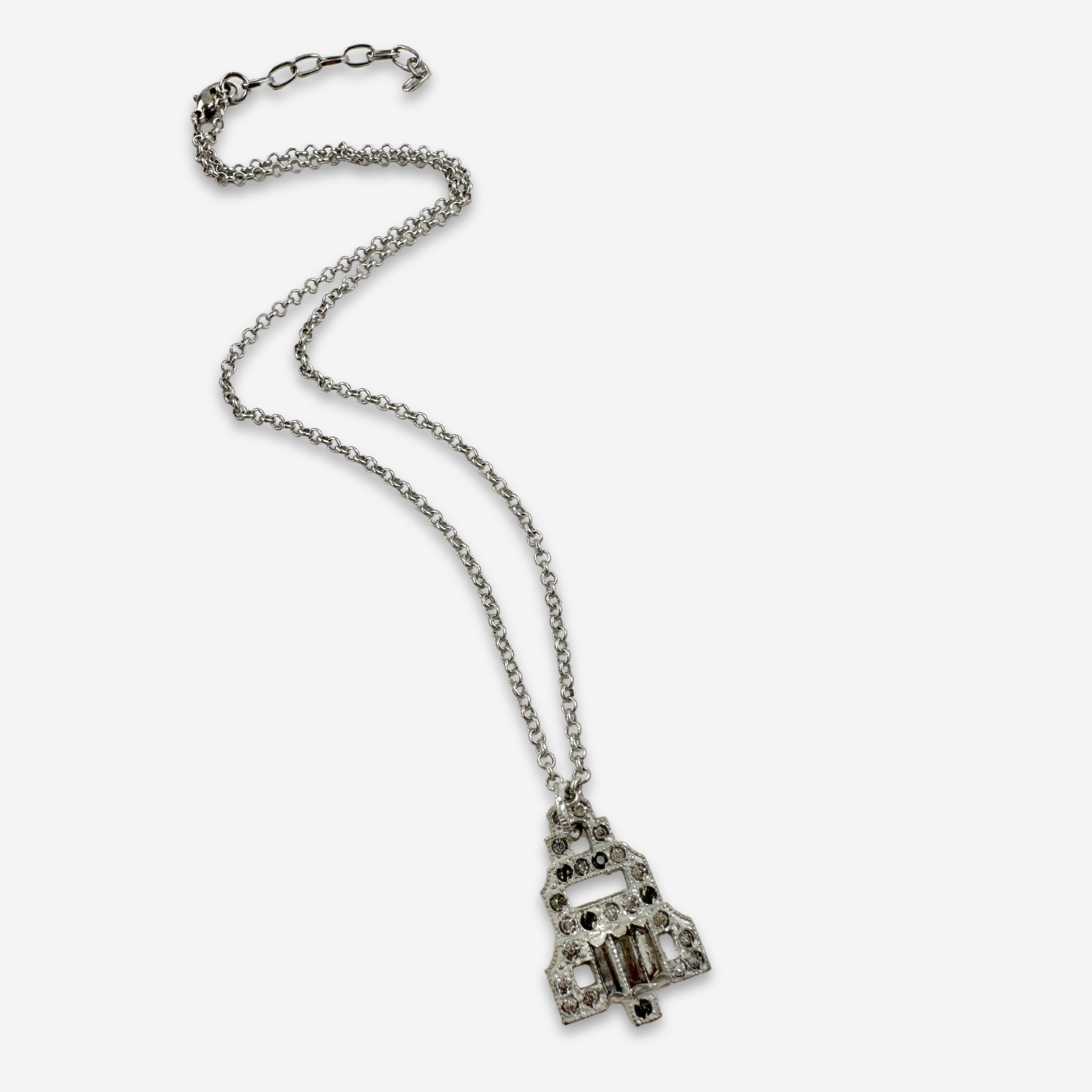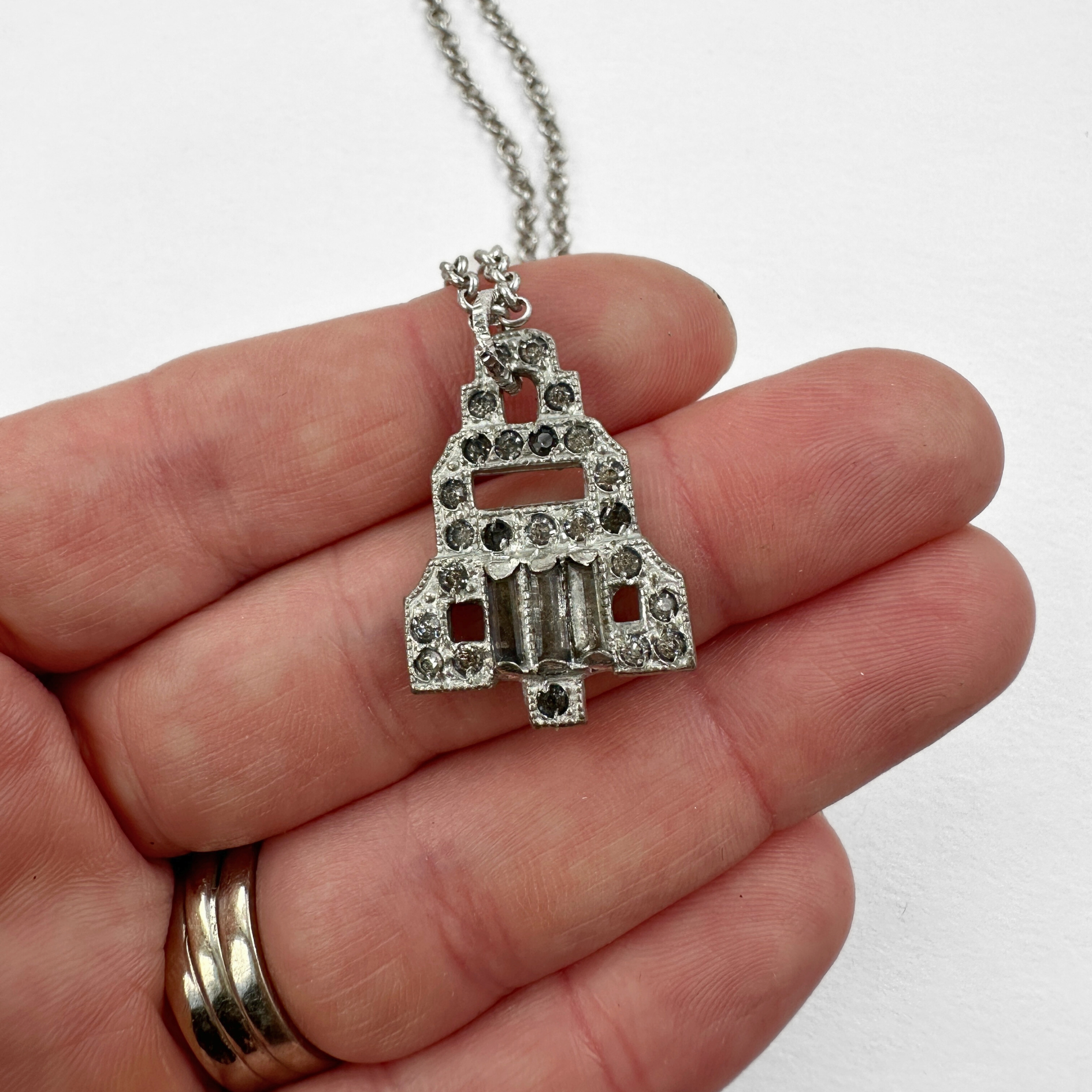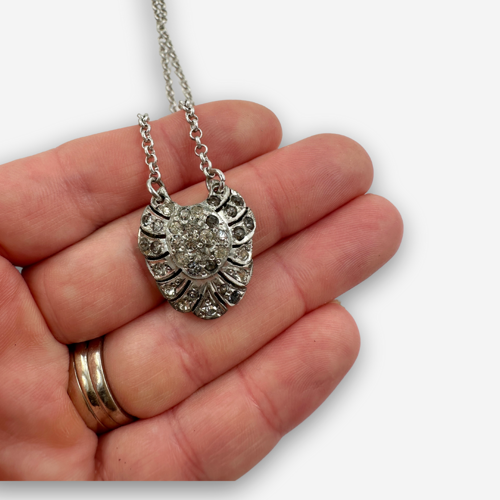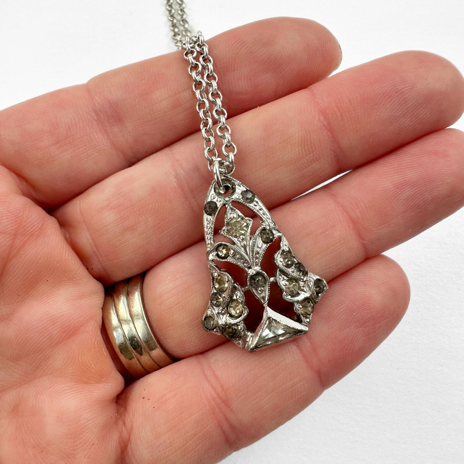 Small clear vintage rhinestone deco pendant on silver chain: choice