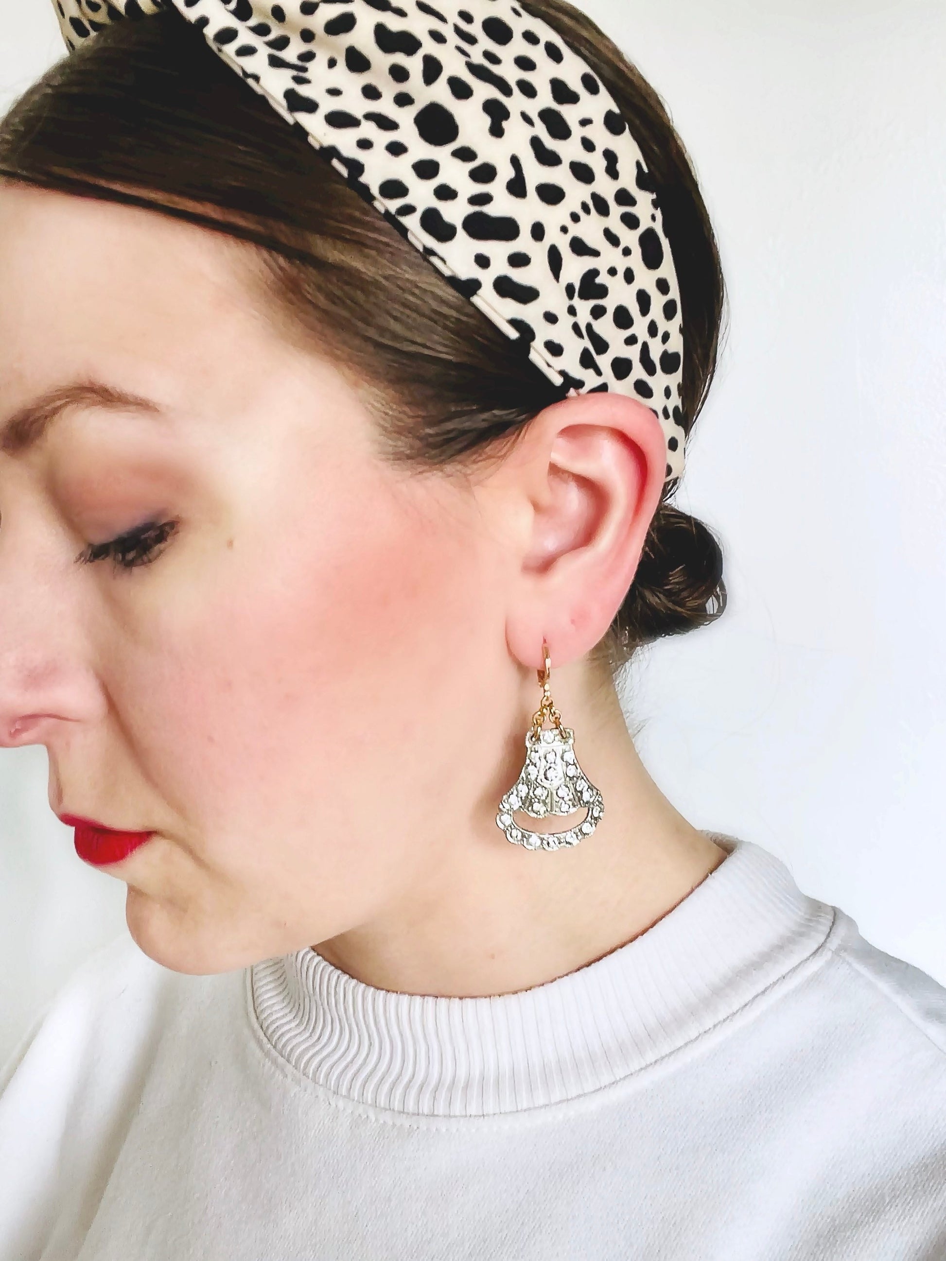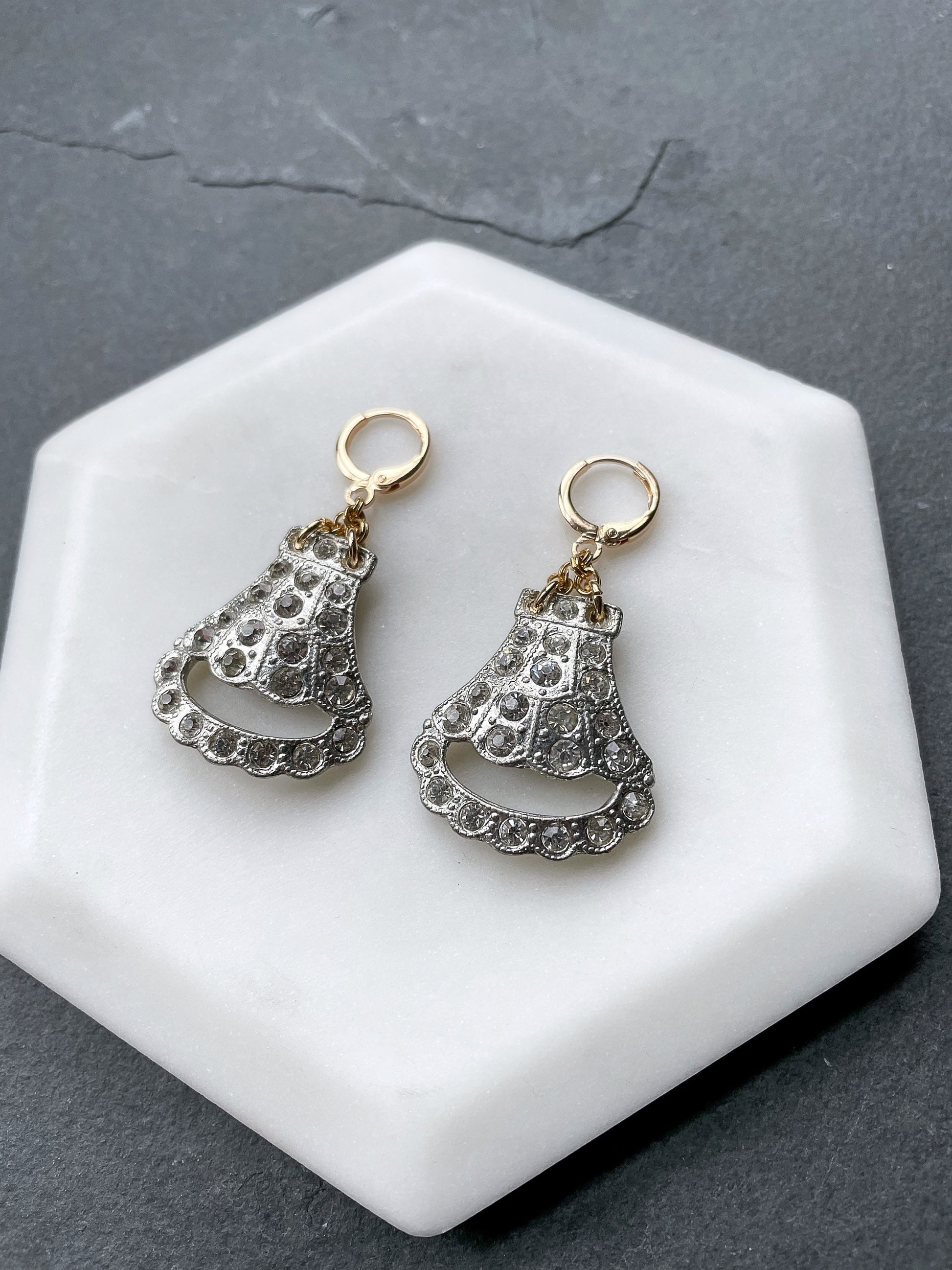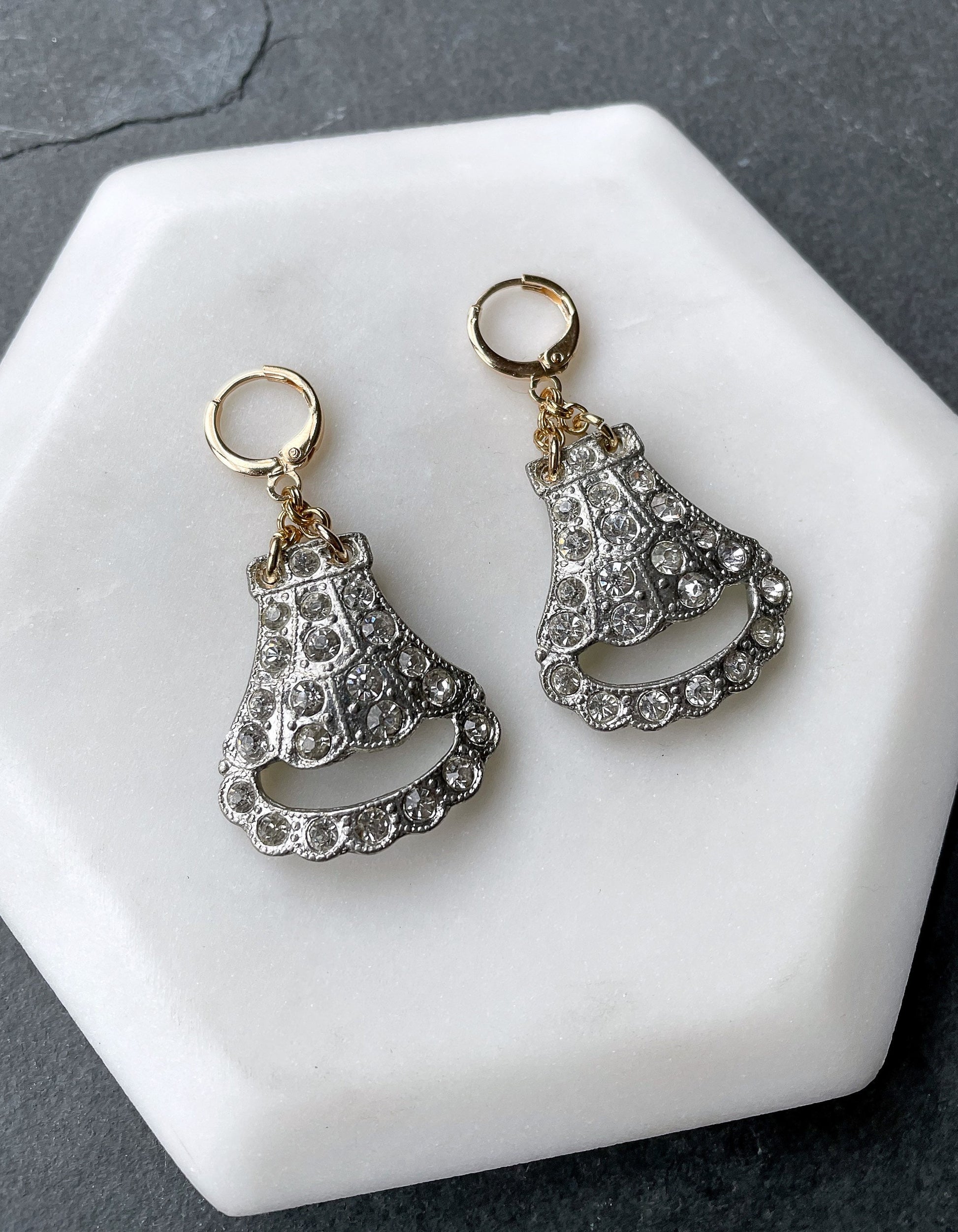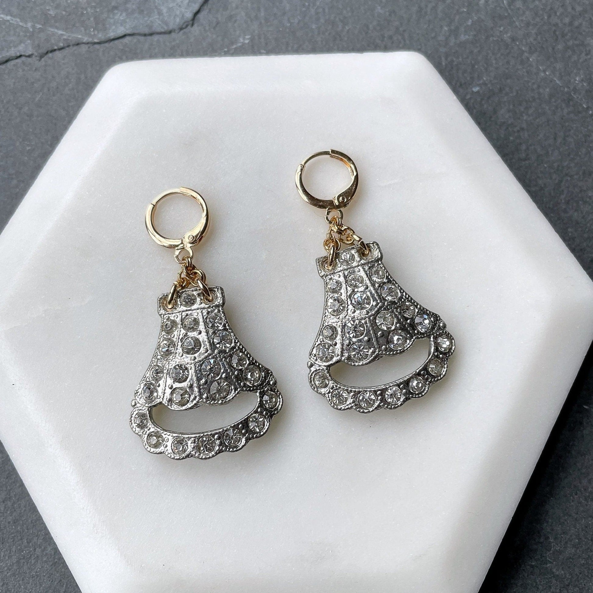 Vintage Art Deco silver and rhinestone earrings with gold plated leverback clasps