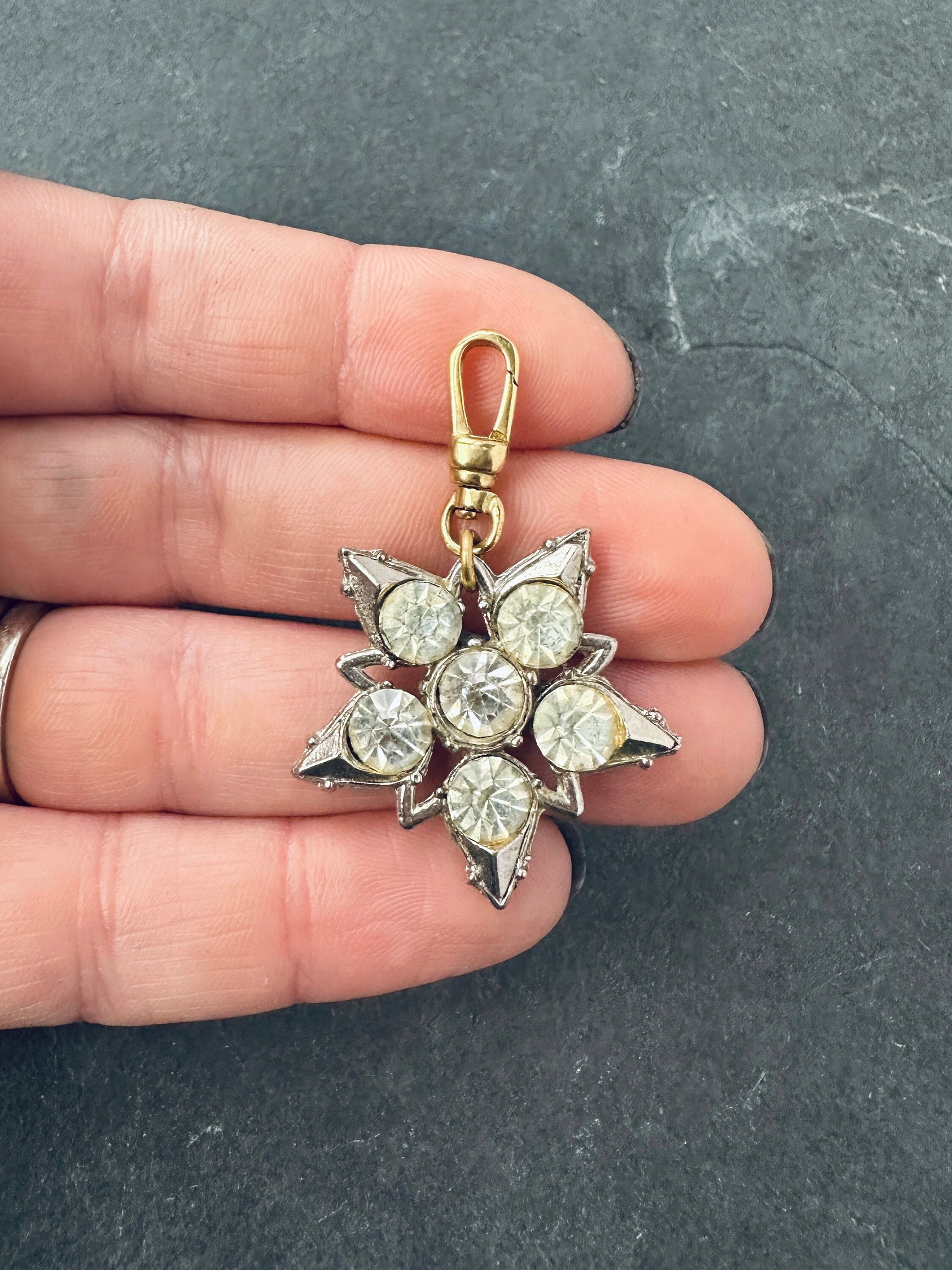 Vintage clear rhinestone star charm with raw brass swivel clasp