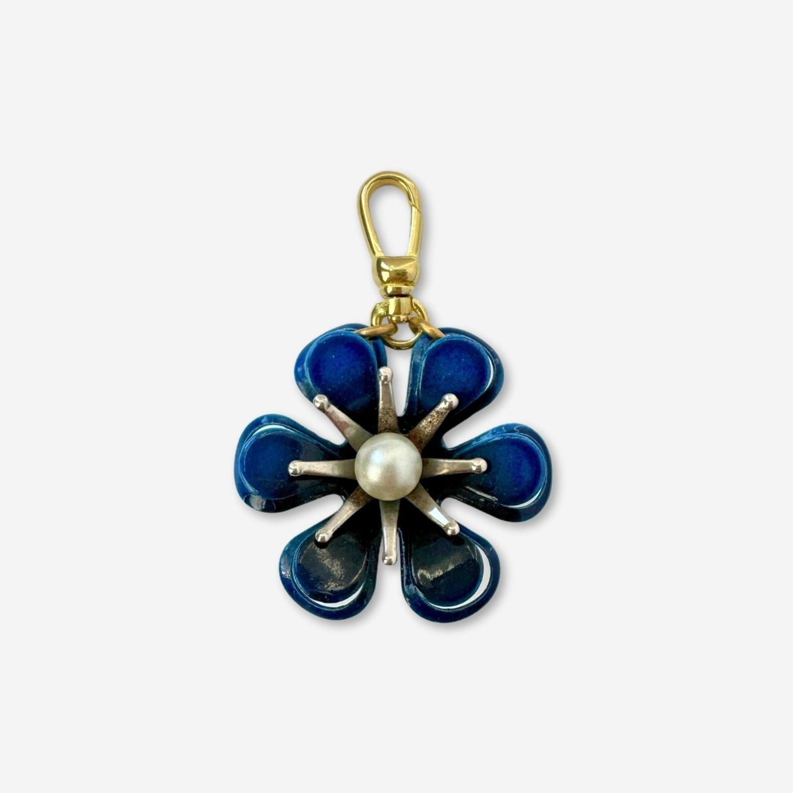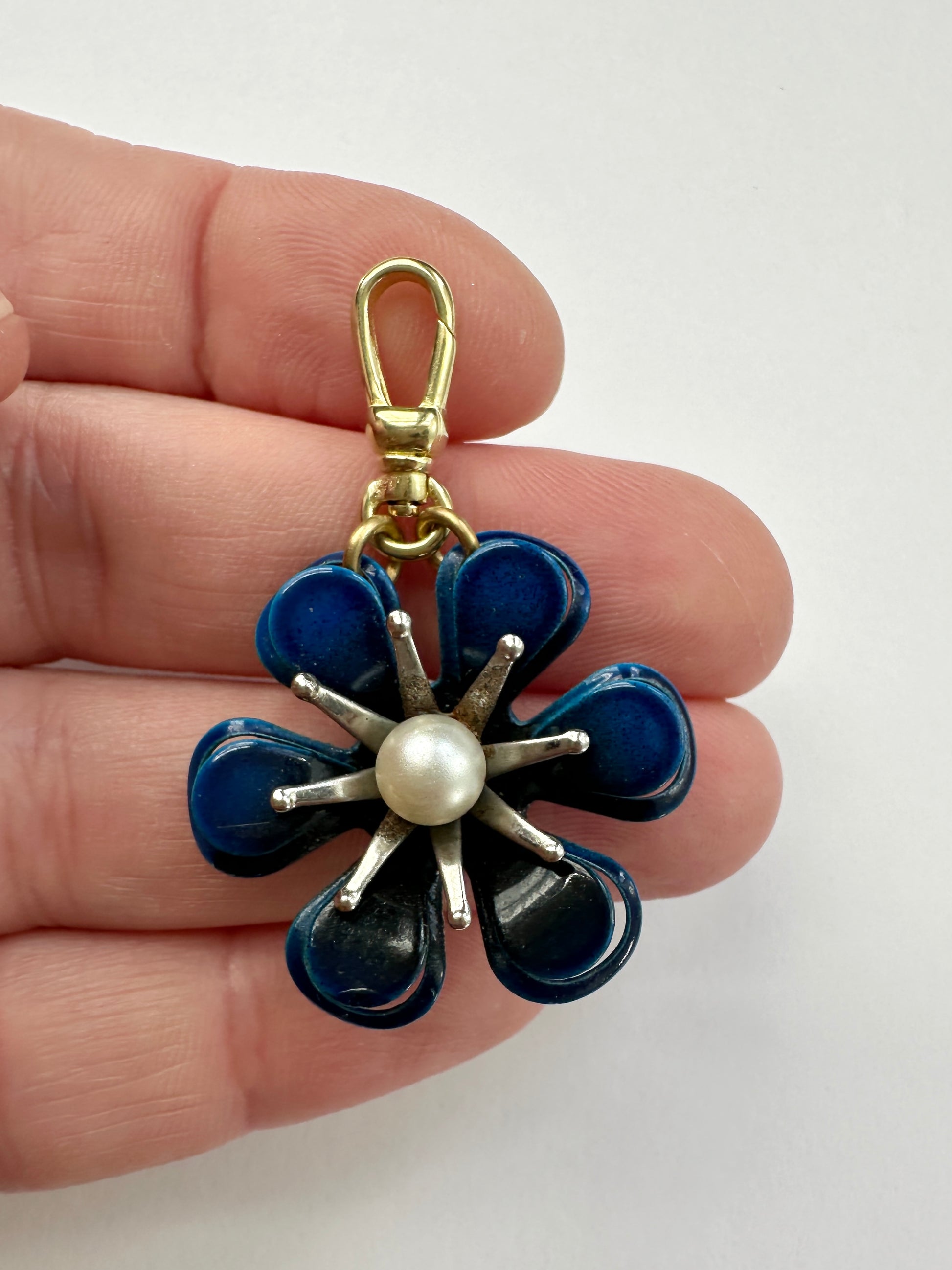 This one of a kind charm was originally a vintage earring, and features a dark blue enamel flower with pearl center.