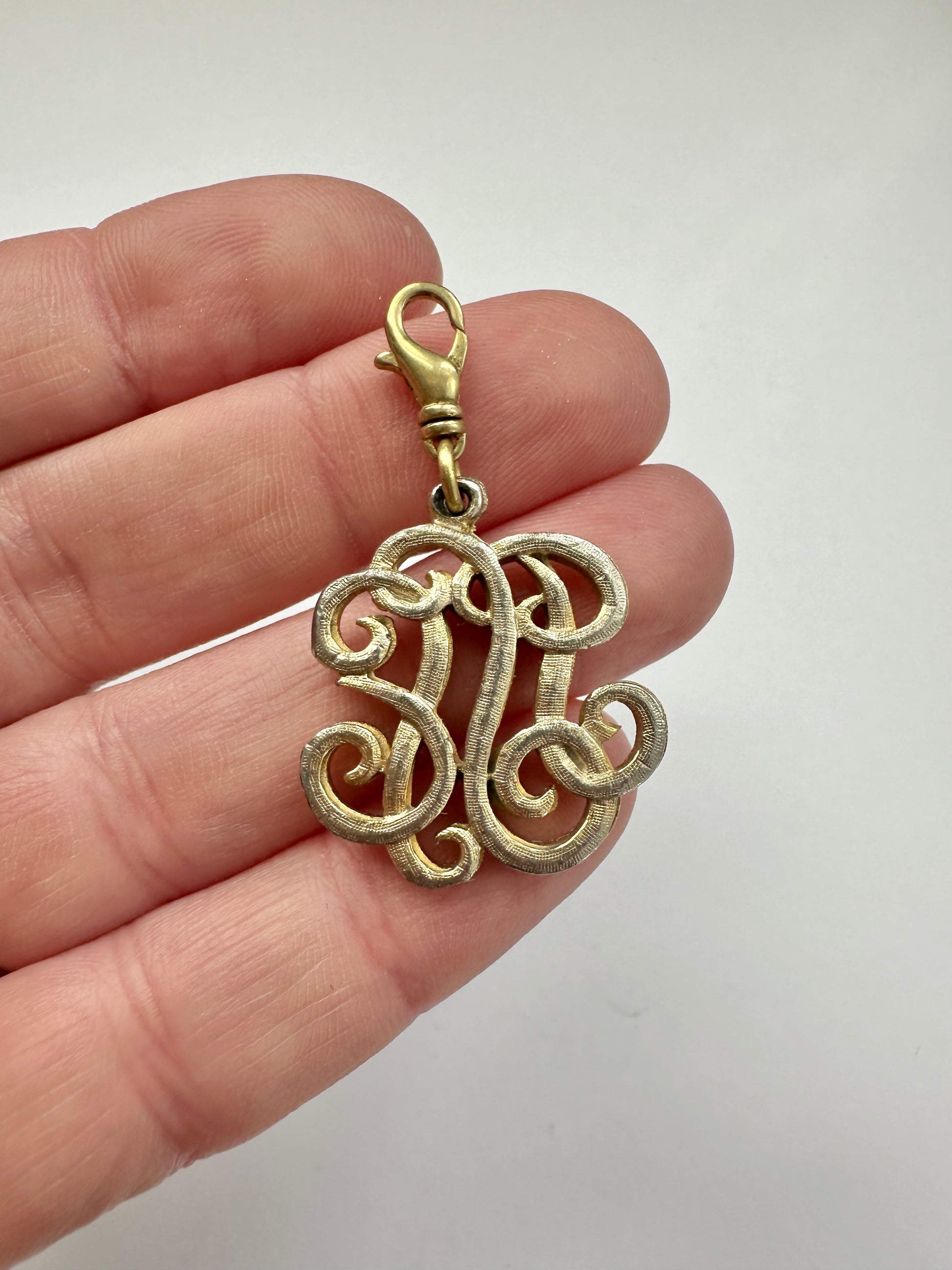 Vintage muted gold "generic monogram" charm with swivel clasp