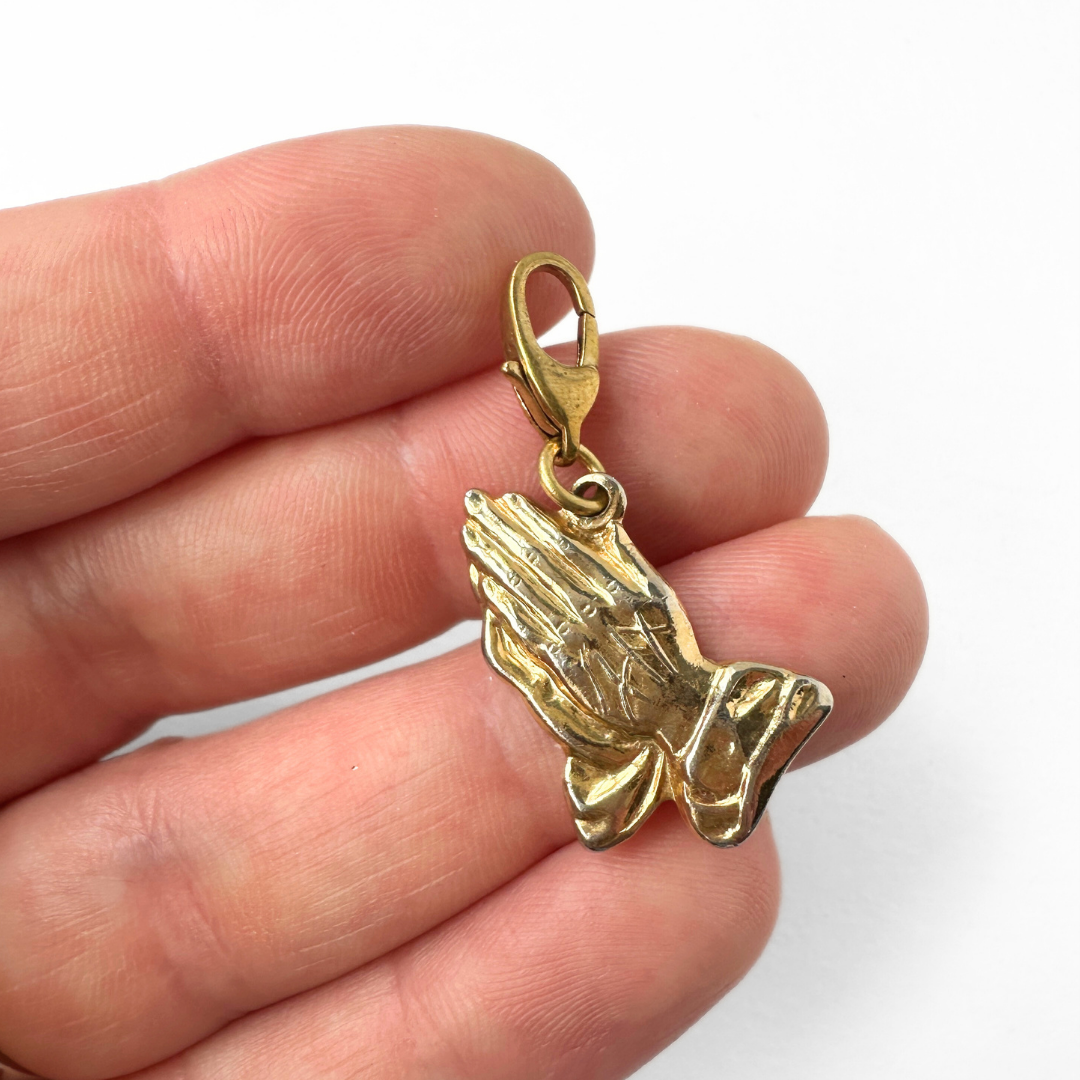 Vintage gold tone praying hands charm with brass clasp