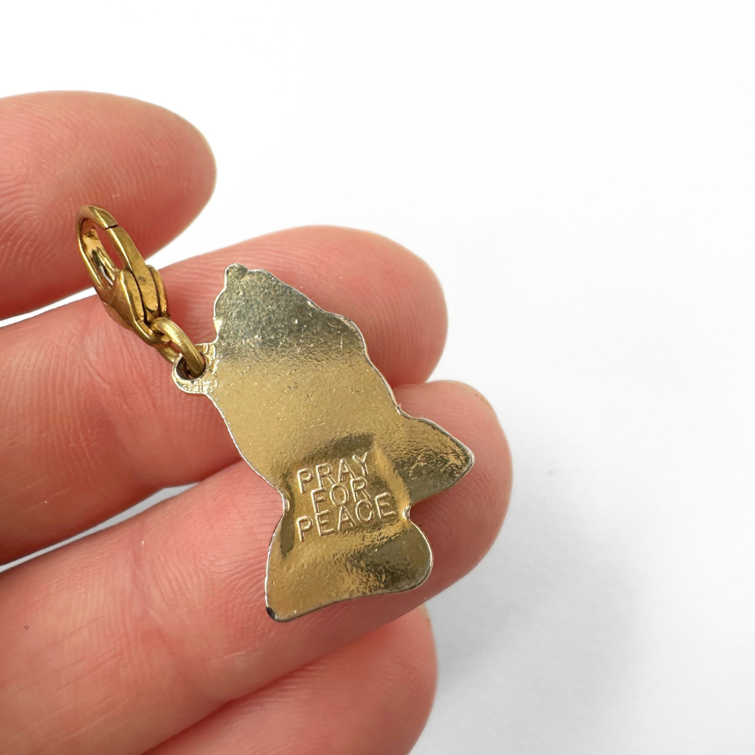 - "Pray for peace" inscribed on back