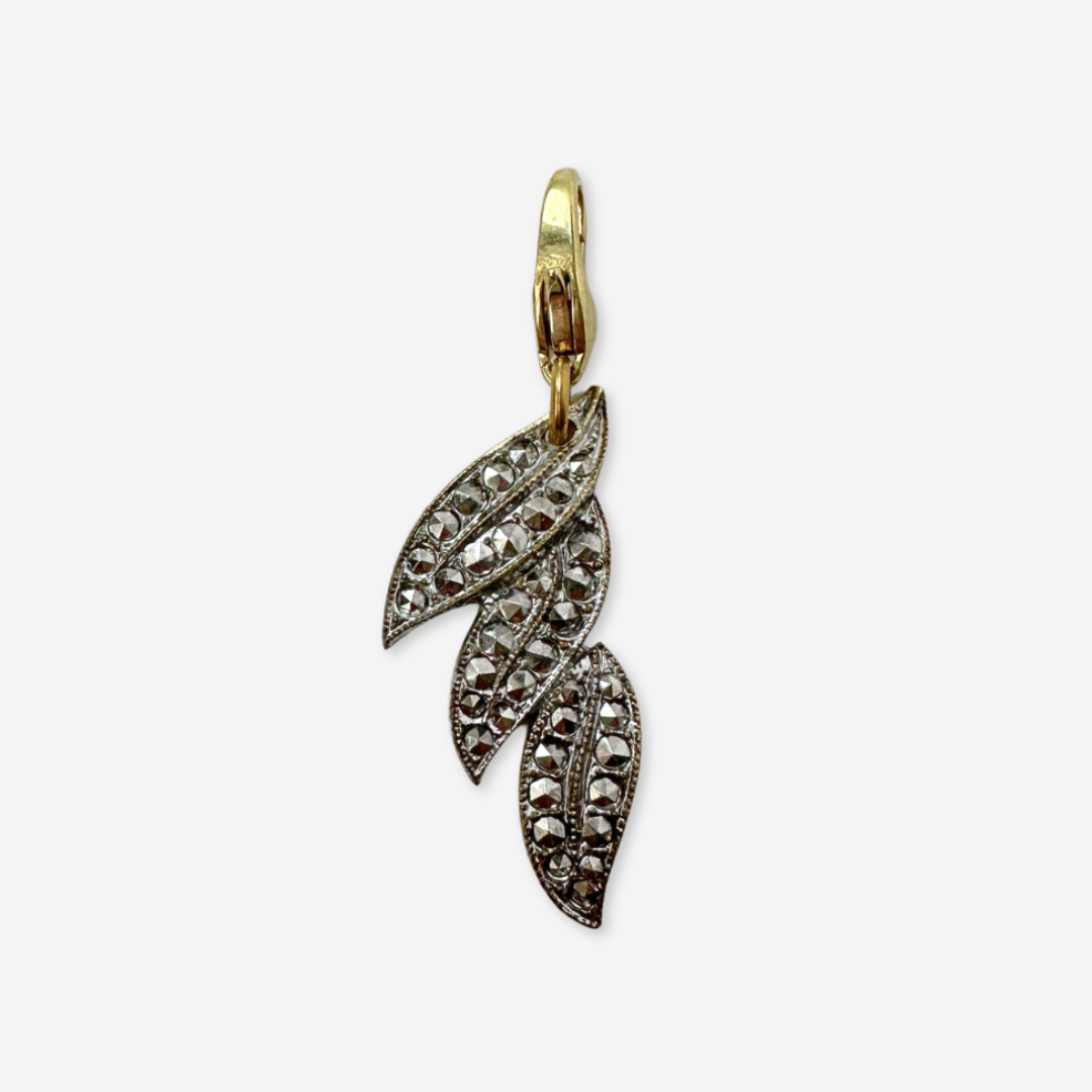 Vintage Czech silver marcasite leaf charm
